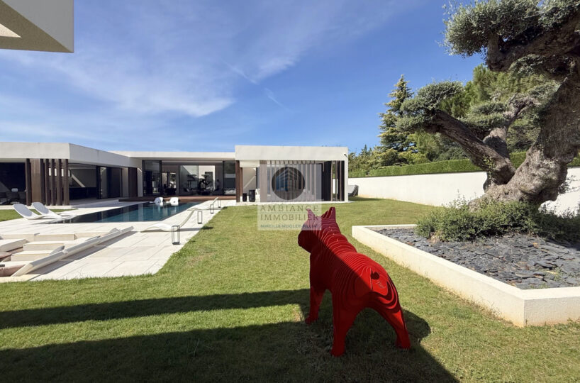 Un lieu de convivialité extérieur exceptionnel, de superbes terrasses, une piscine miroir chauffée de 12,50m x 4,50m -un salon avec brasero.