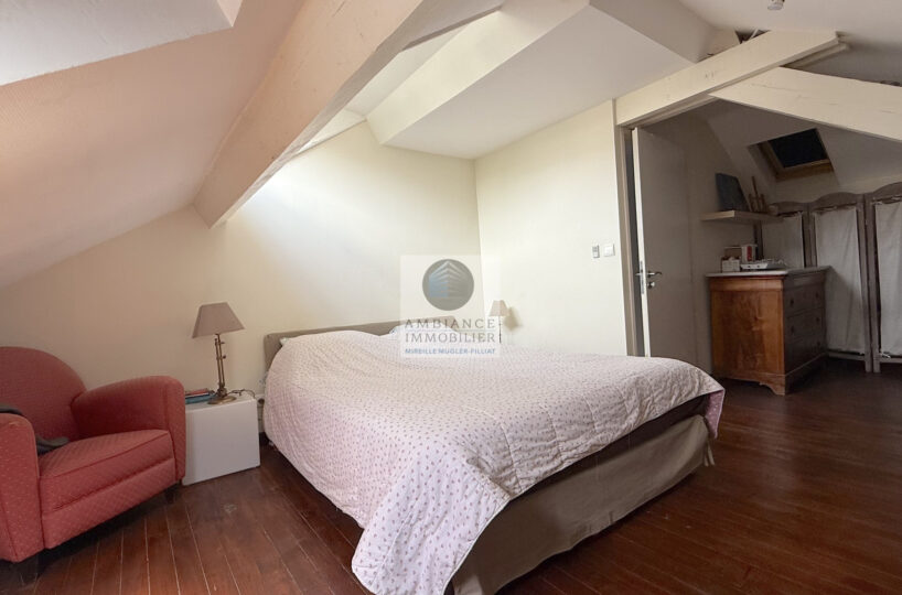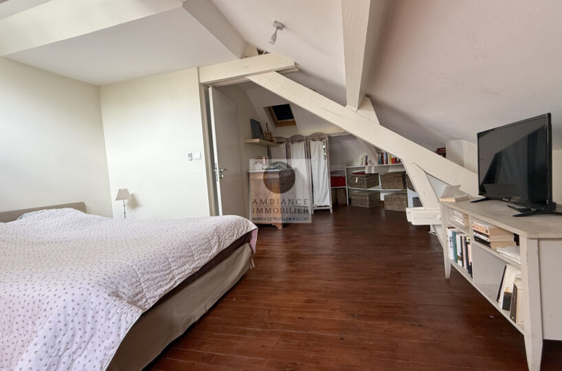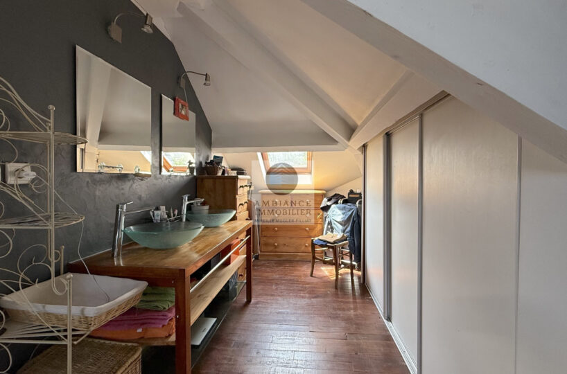 Un espace nuit avec 3 chambres, une salle d’eau et 1 chambre parentale climatisée avec salle-de-bains en sous-pente de 32m2 au sol et 18m2 carrez.