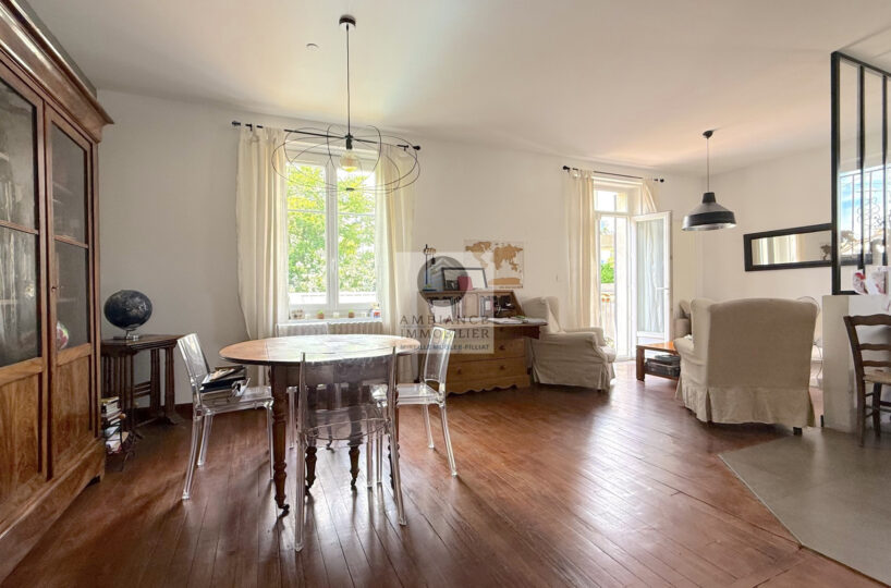 Le caractère authentique préservé : parquet, cheminée et beaux volumes pour cette maison de 1920.