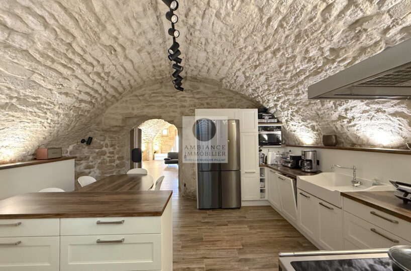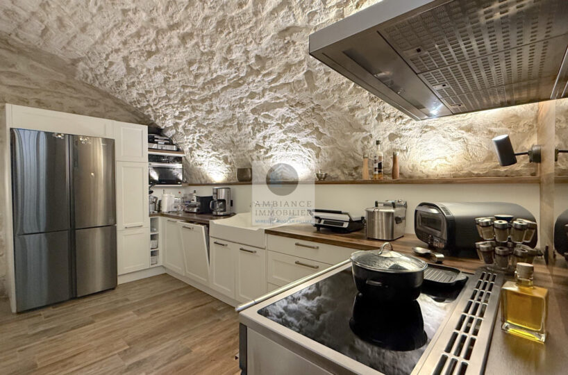 Une rénovation totale dans un esprit contemporain et raffiné tout en préservant le caractère authentique des lieux : parquet, l’élégance intemporelle des pièces voûtées et murs en pierres superbement mis en valeur par de beaux éclairages.