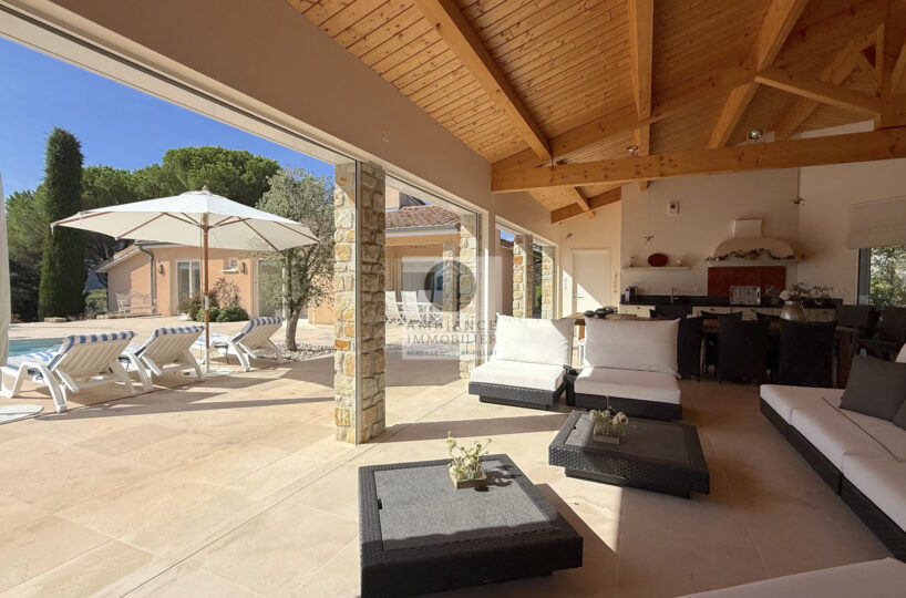Une ouverture totale totale sur les terrasses et la piscine, une invitation à la détente, aux réceptions familiales et à la douceur de vivre.