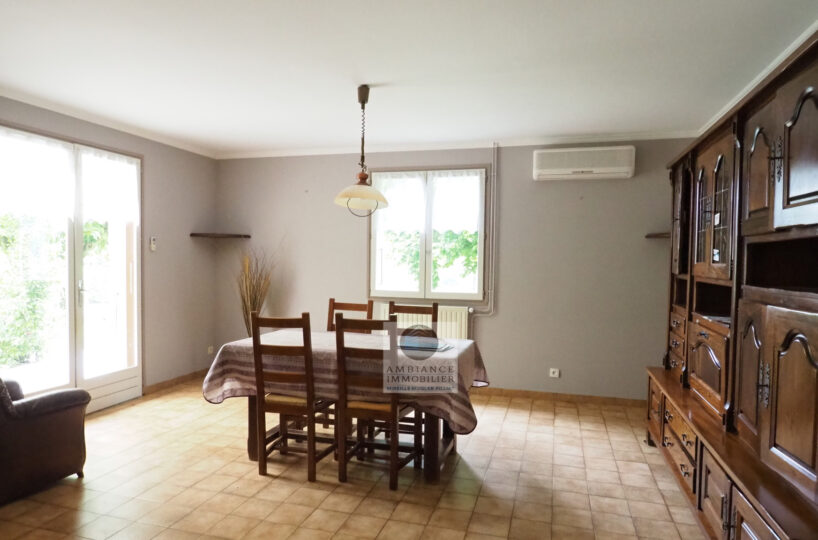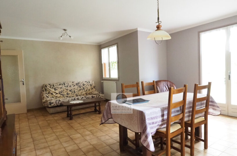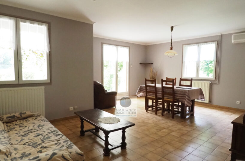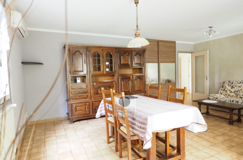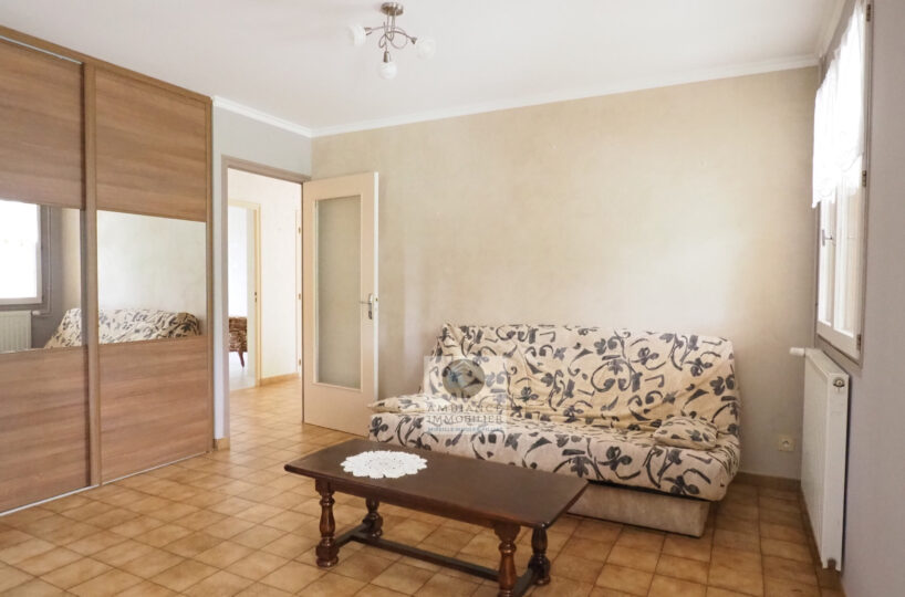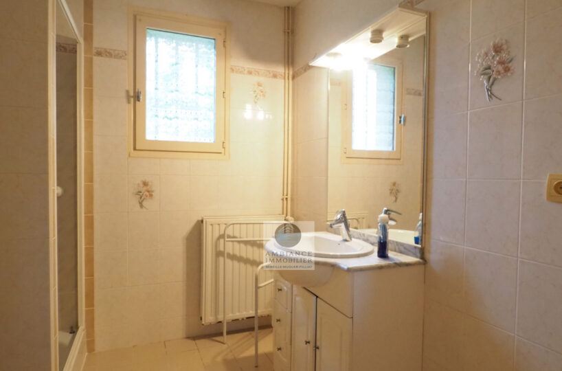Séjour-salon de 29m2 climatisé, cuisine intégrée, 3 chambres avec placards, salle d’eau avec vasque et douche.