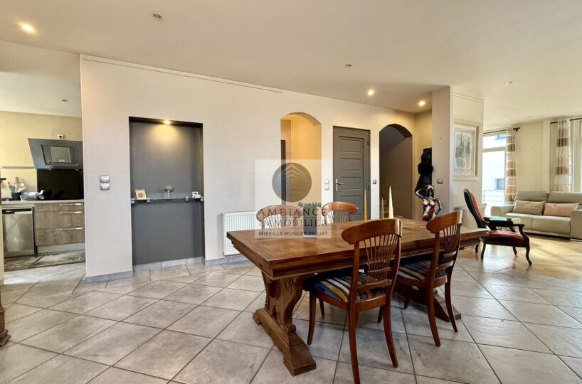Des espaces de vie généreux : 64m2 de pièces de vie : une cuisine intégrée ouverte sur un patio, un séjour-salon de 55m2 avec de grandes baies vitrées ouvrant sur la terrasse au sud.