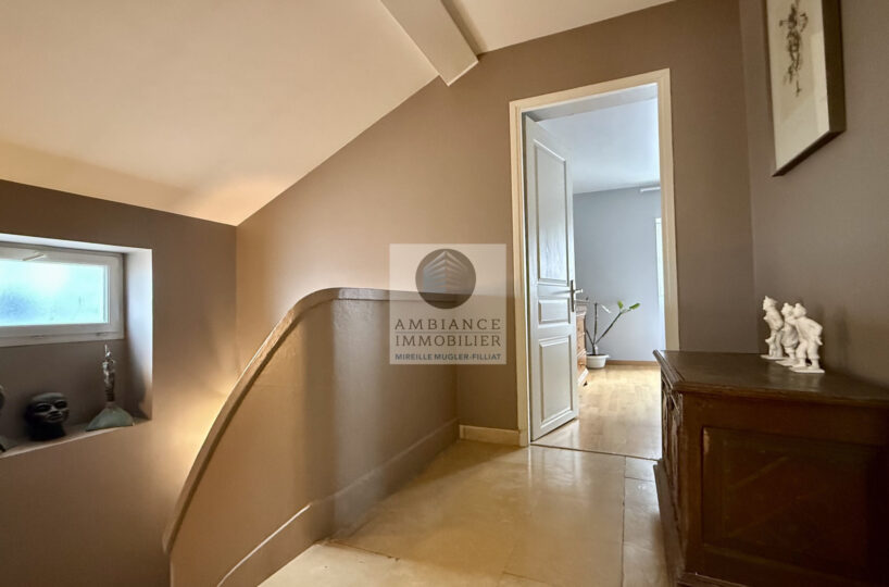 De beaux volumes pour cette maison de 1940, le caractère authentique préservé : sols en marbre, parquet point de  Hongrie…