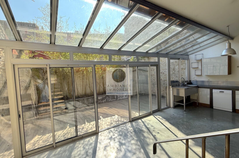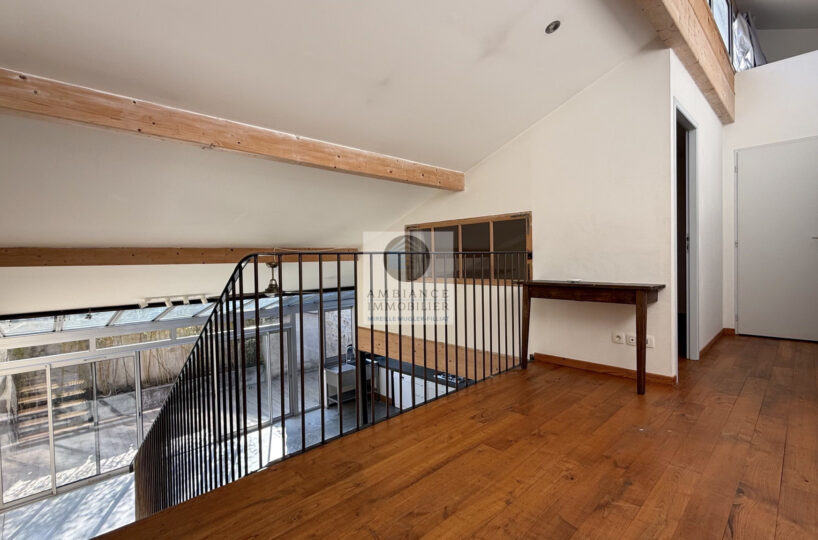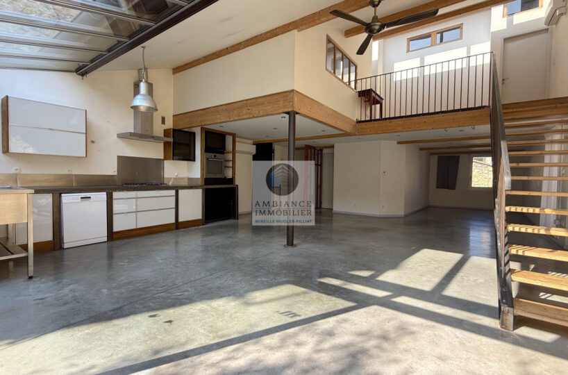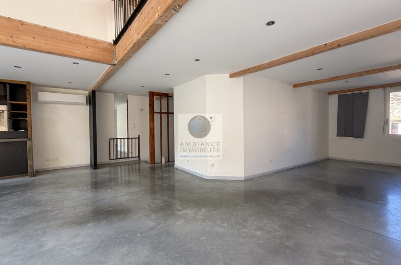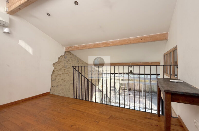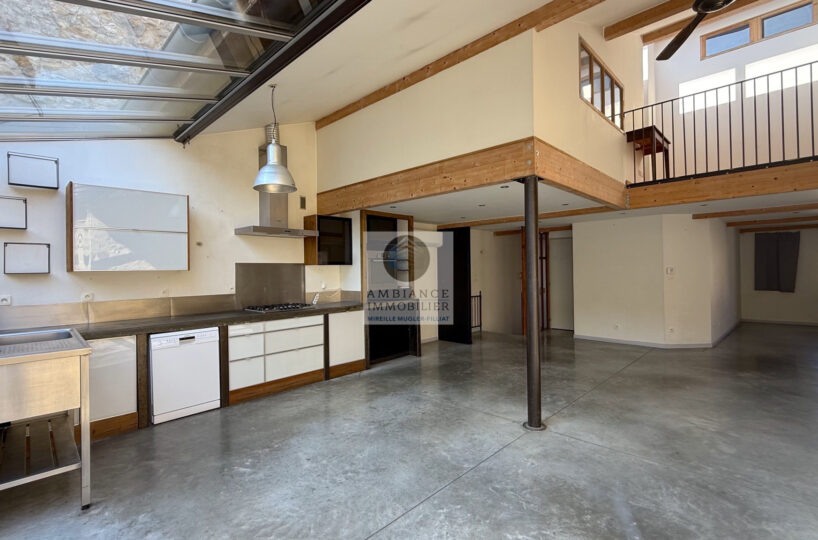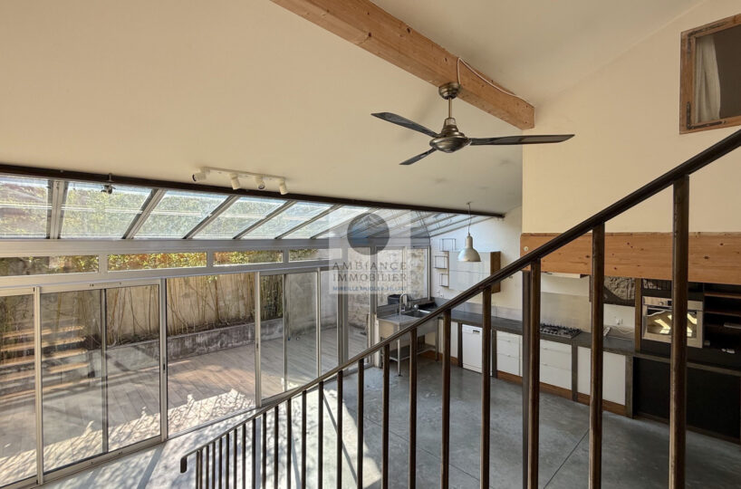 LIVRON-SUR-DRÔME, le centre ville et le calme, la luminosité et de beaux volumes pour cet ancien atelier de menuiserie transformé avec brio en maison de ville avec patio et garage.