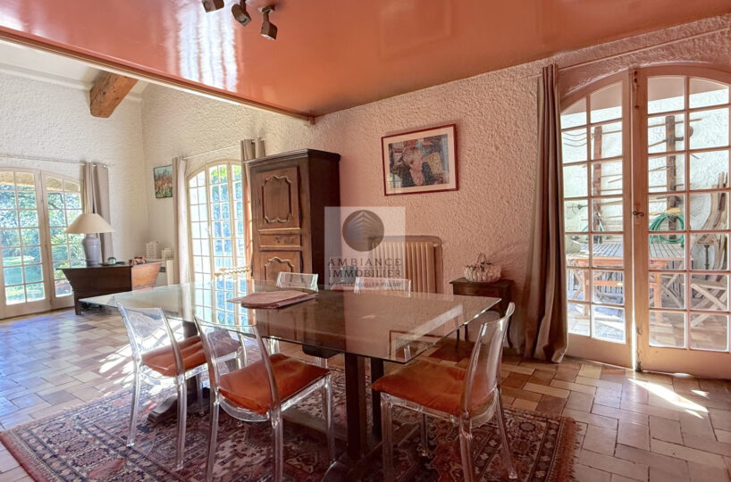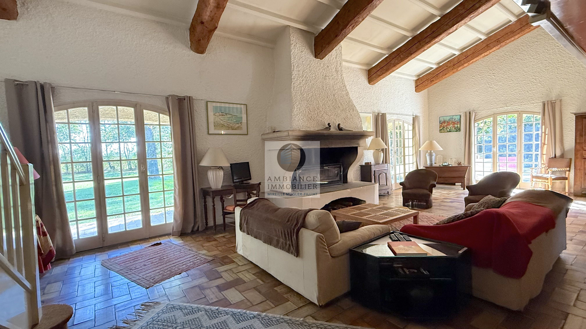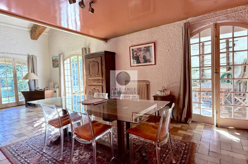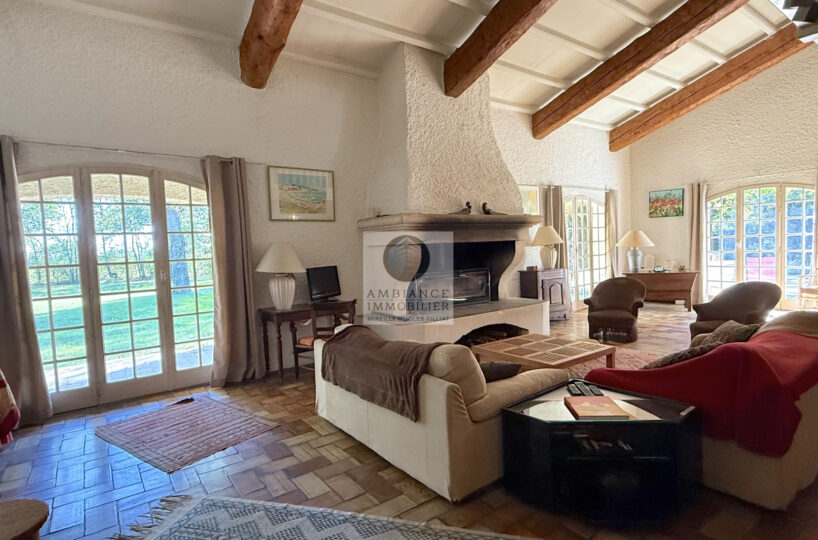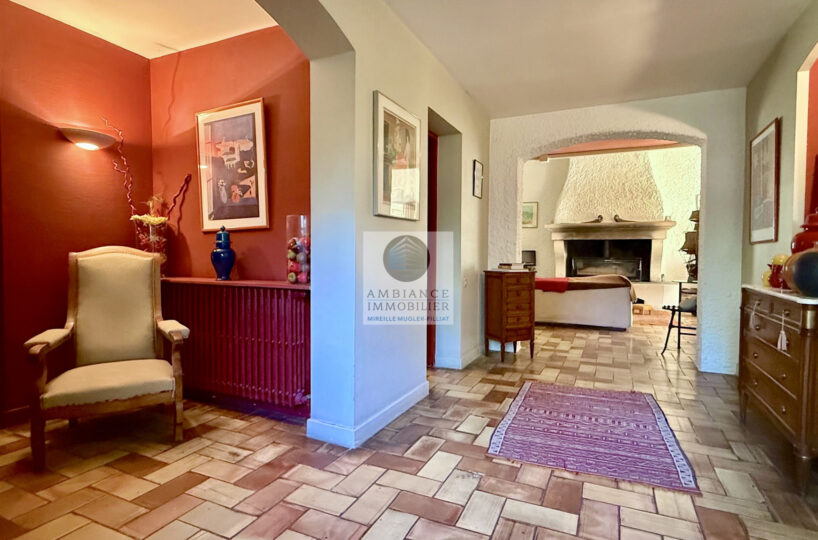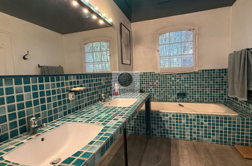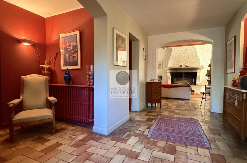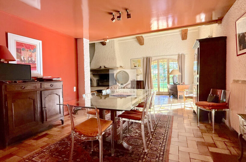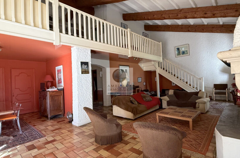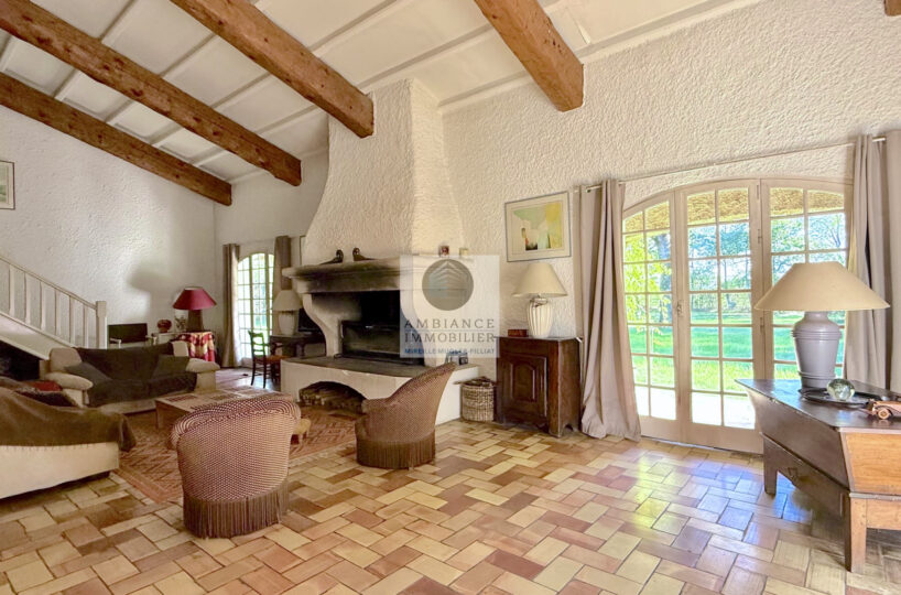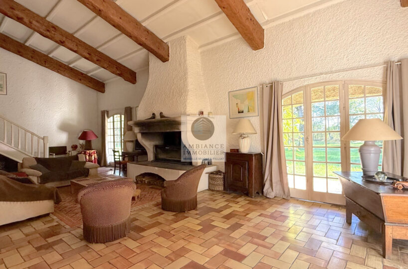 Une vaste entrée conviviale desservant une cuisine intégrée de 12m2 avec une arrière cuisine/buanderie de 18m2, un superbe salon-séjour de 75m2 avec une cheminée monumentale, de grandes ouvertures pour accéder aux différentes ambiances de terrasses et au jardin.