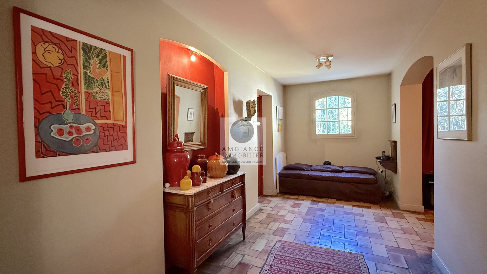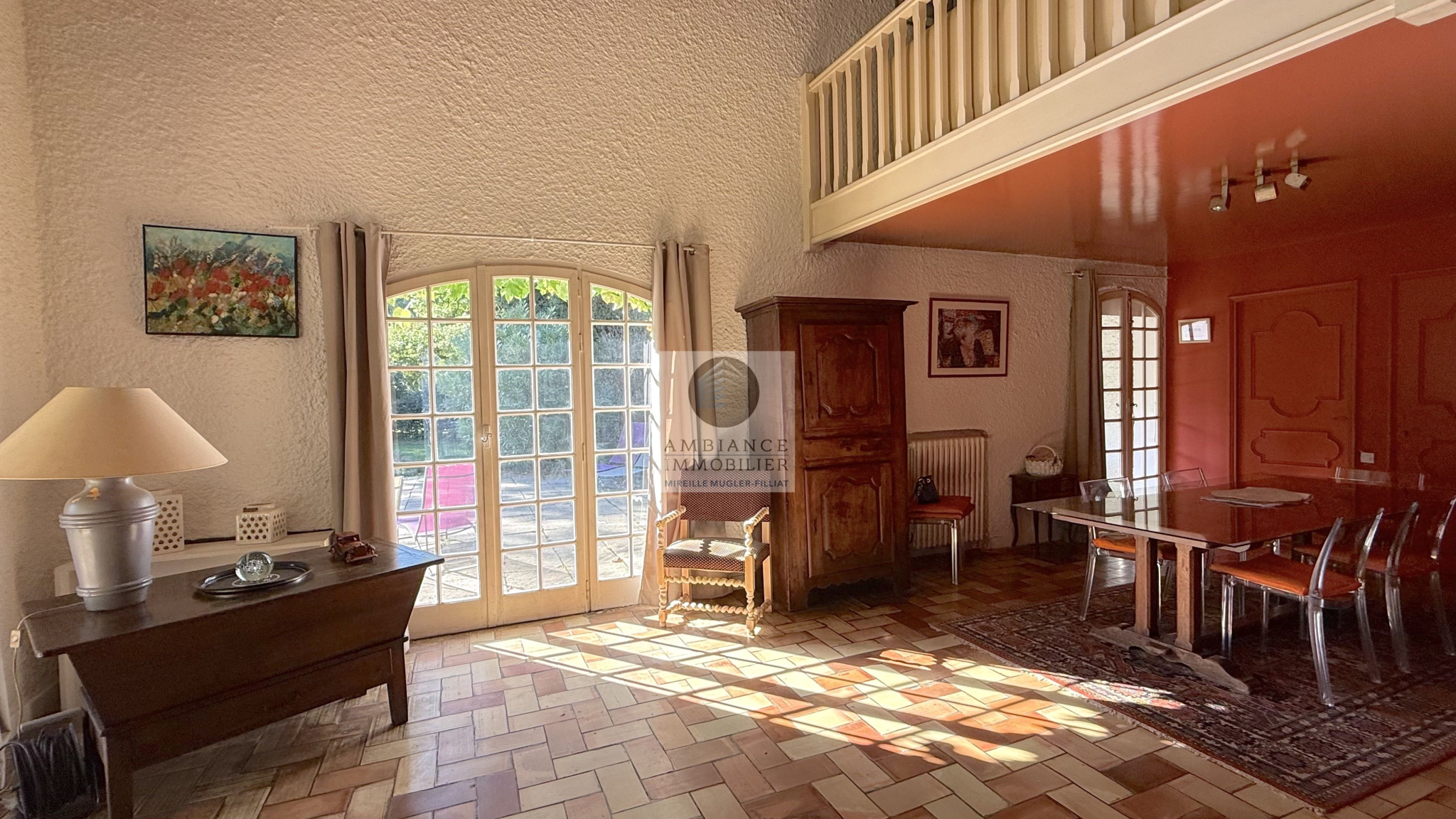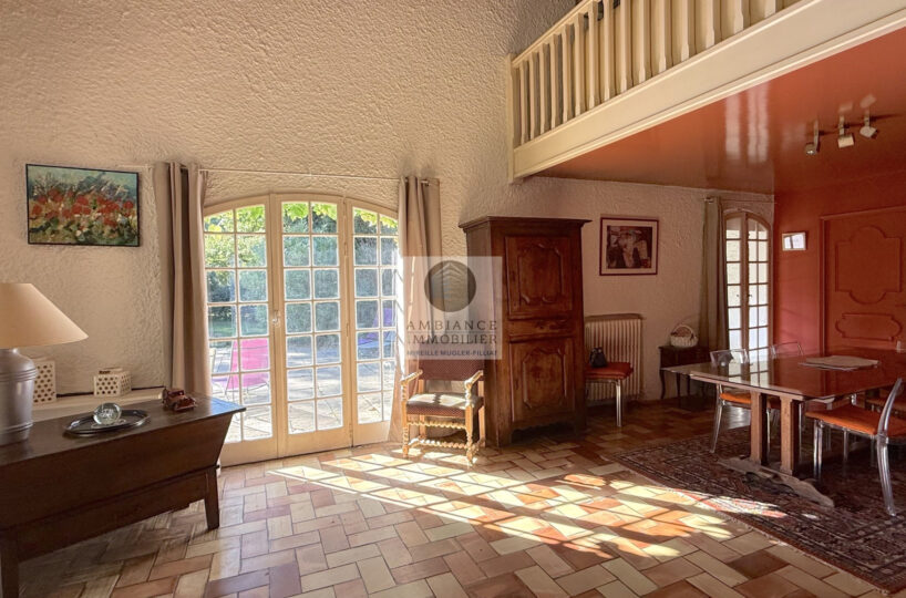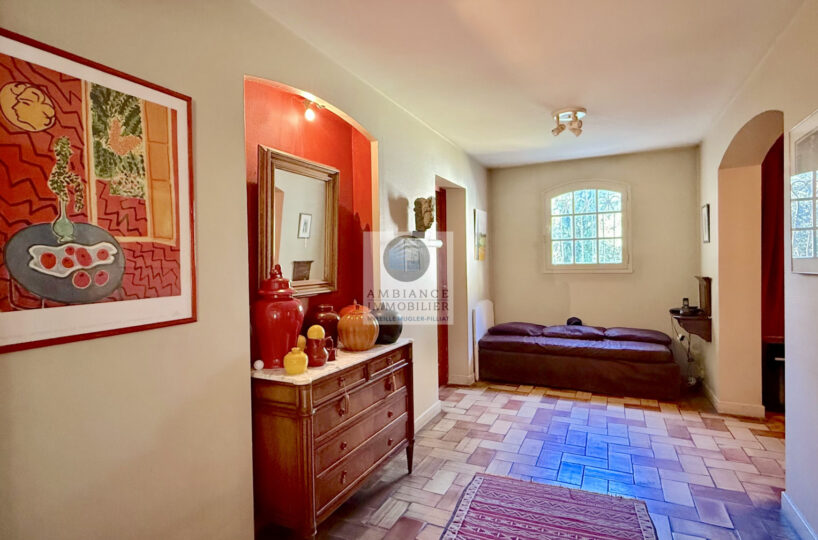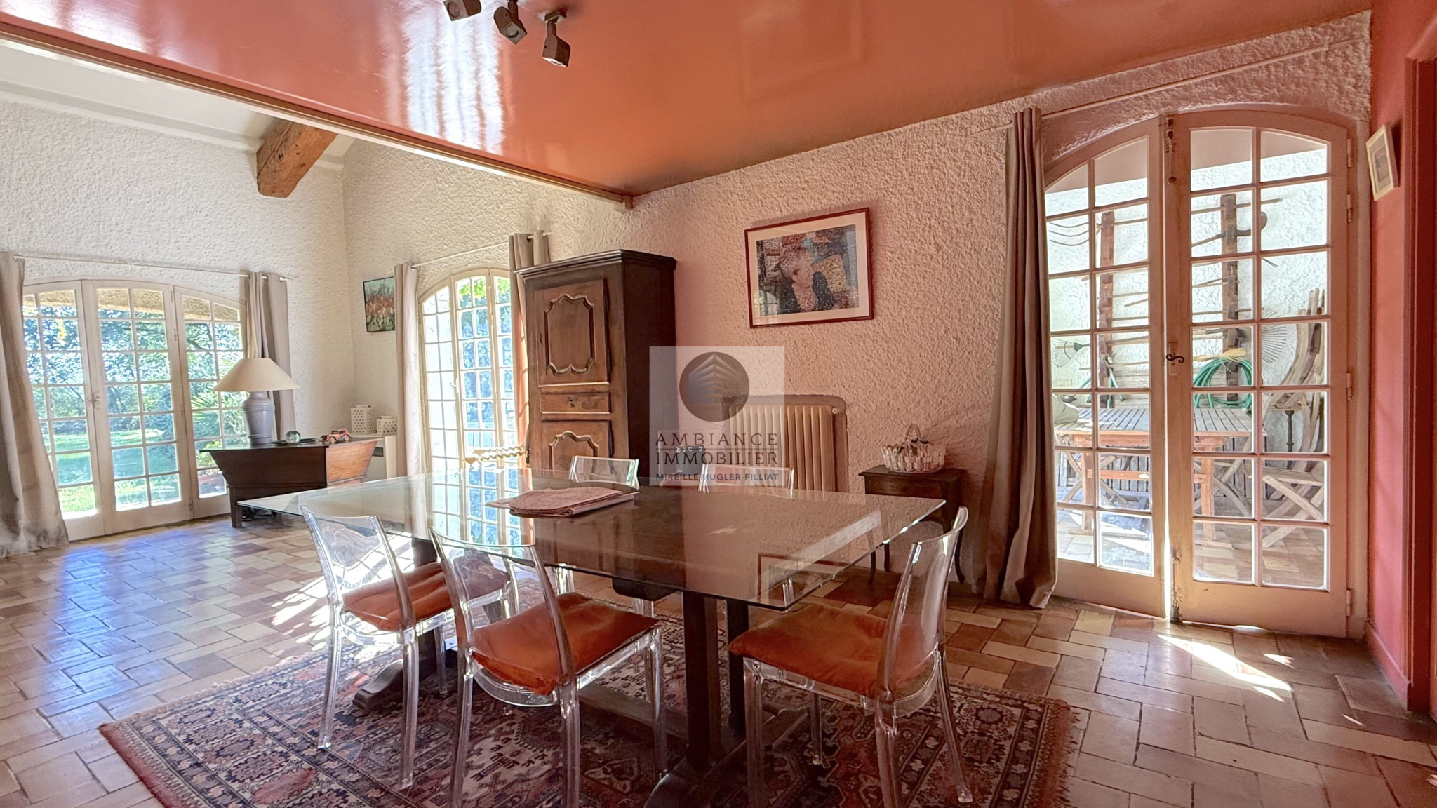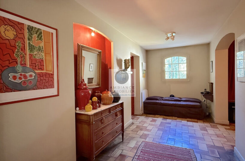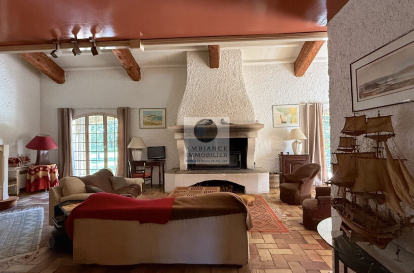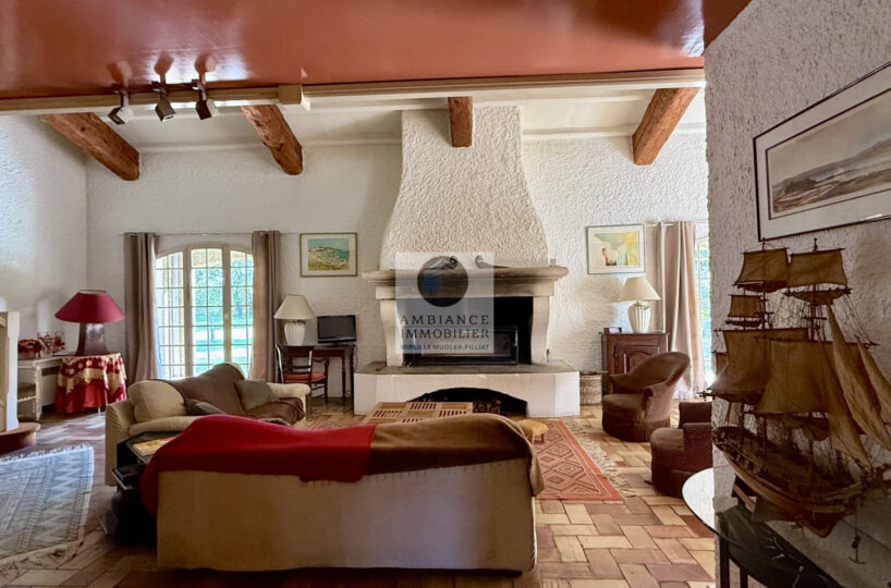 Une vaste entrée conviviale desservant une cuisine intégrée de 12m2 avec une arrière cuisine/buanderie de 18m2, un superbe salon-séjour de 75m2 avec une cheminée monumentale, de grandes ouvertures pour accéder aux différentes ambiances de terrasses et au jardin.