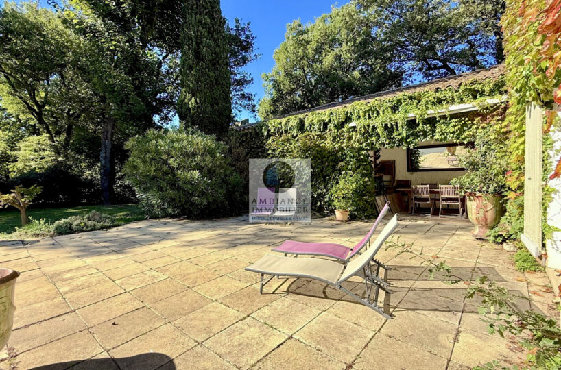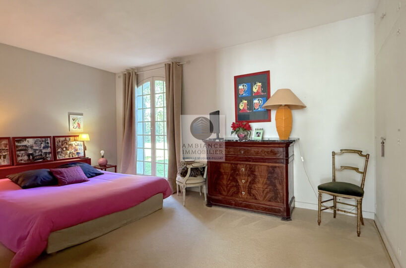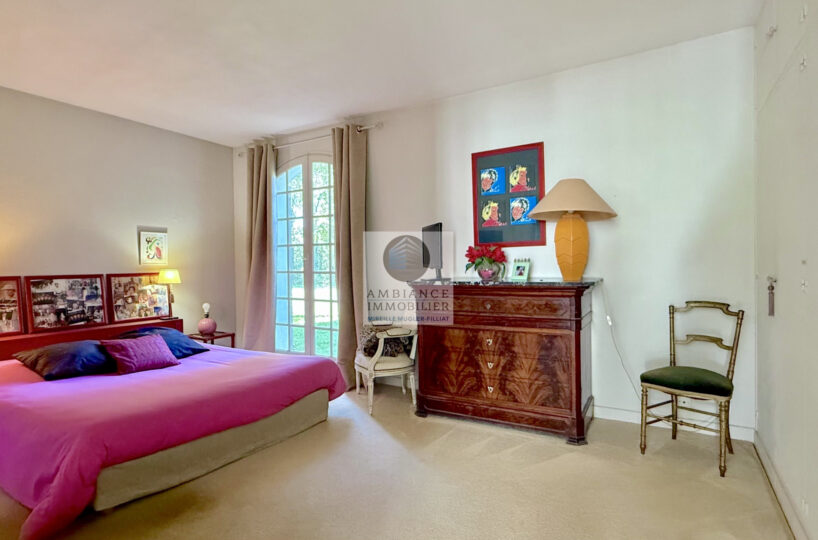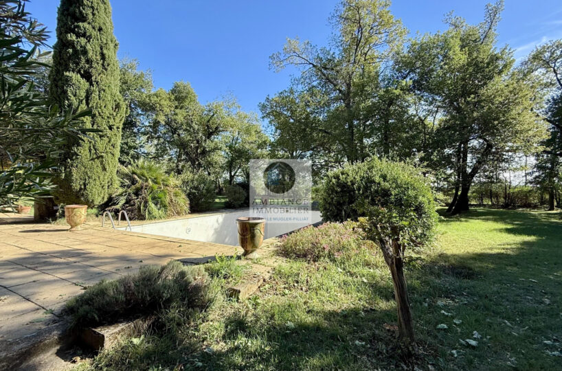 Un superbe parc de 5 650m2 avec de grands arbres, un espace détente autour d’une piscine de 10m x 5m et de belles terrasses.