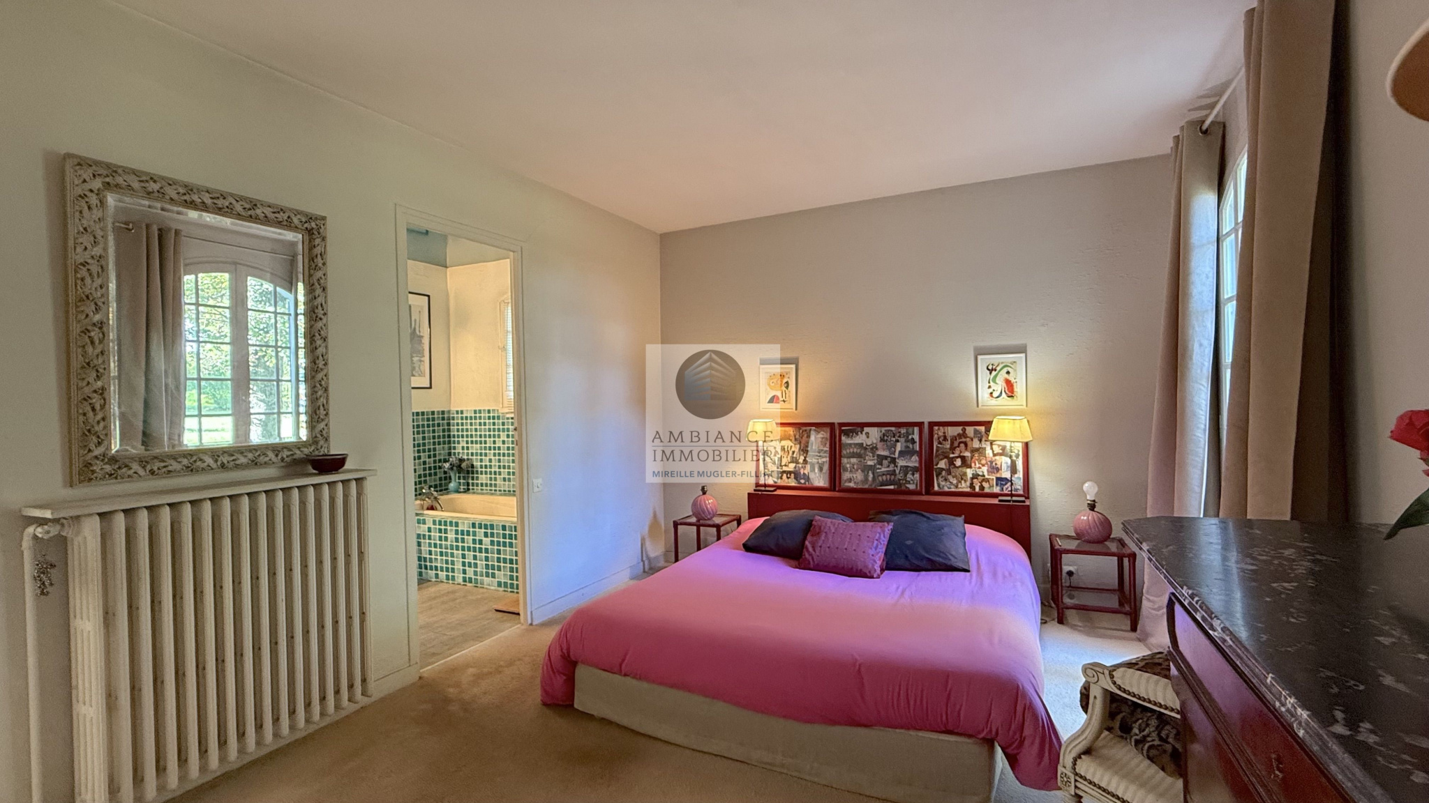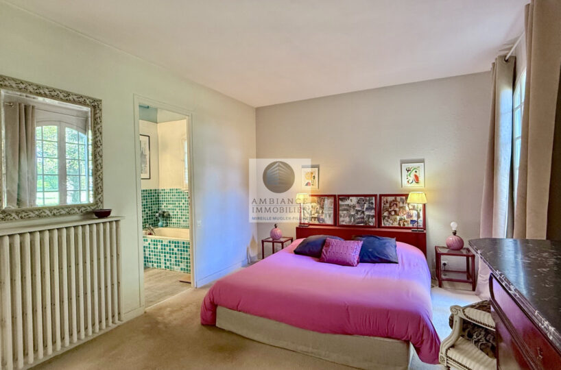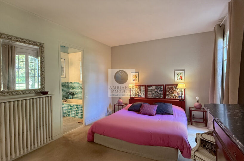 Un espace nuit au rez-de-chaussée avec 3 chambres spacieuses dont 1 chambre parentale de 18m2 avec un accès direct à la salle de bains : baignoire et 2 vasques, 1 salle d’eau avec douche et vasque.