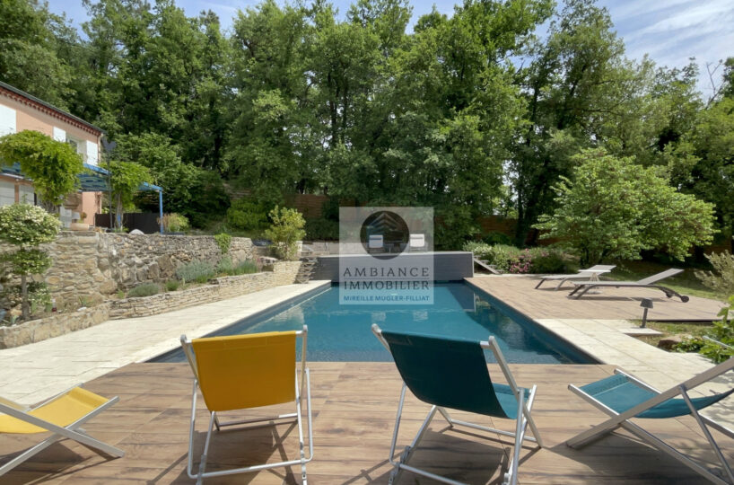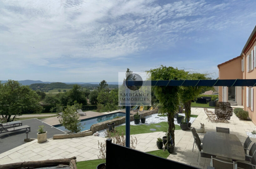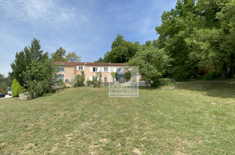 ETOILE SUR RHONE à 5mn dans quartier résidentiel, le calme, une superbe vue, un environnement campagne pour cette ancienne bergerie de 242m2. Salon-séjour de 37m2 avec cheminée, salon TV, cuisine intégrée de 16m2 avec verrière et un espace dînatoire de 22m2, une buanderie avec salle d’eau de 18m2 pouvant être aménagée en chambre d’amis. Au 1er étage : 5 chambres dont un espace parental avec une chambre de 24m2, un dressing et une salle d’eau avec douche à l’italienne et vasque, une salle de bains pour les enfants avec douche, baignoire et vasques, un dressing familial. Cave à vin, garage de 55m2 avec 2 portails motorisés. Chaudière au gaz à condensation de 2021 – huisseries pvc – adoucisseur. Une Parcelle de 4,5 ha en partie boisée et en prairie avec un espace détente autour d’une belle piscine de 11,5m x 5,5m avec volet immergé, de vastes terrasses pour profiter de la vue. Une belle ambiance zen pour cette maison familiale–