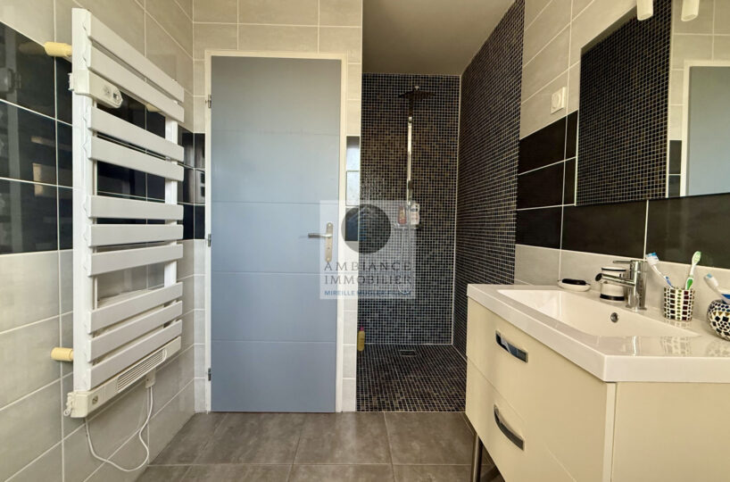 Une construction de 2012 : plancher chauffant au rdc et à l’étage radiateurs – climatisation réversible installée en 2020 – huisseries en alu et pvc – volets roulants électriques avec centralisation.