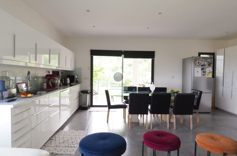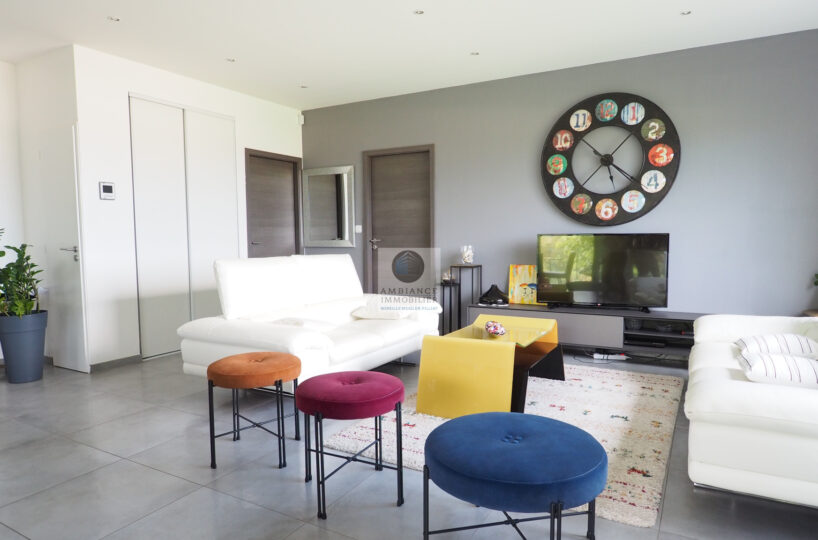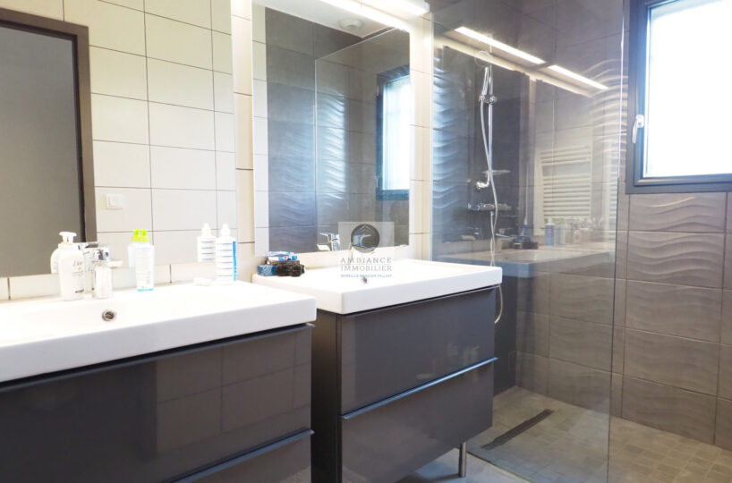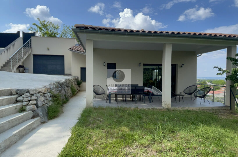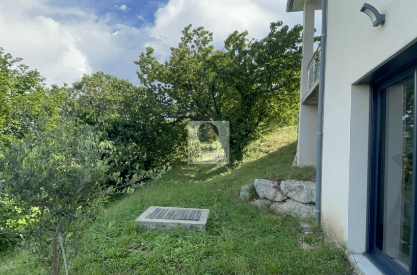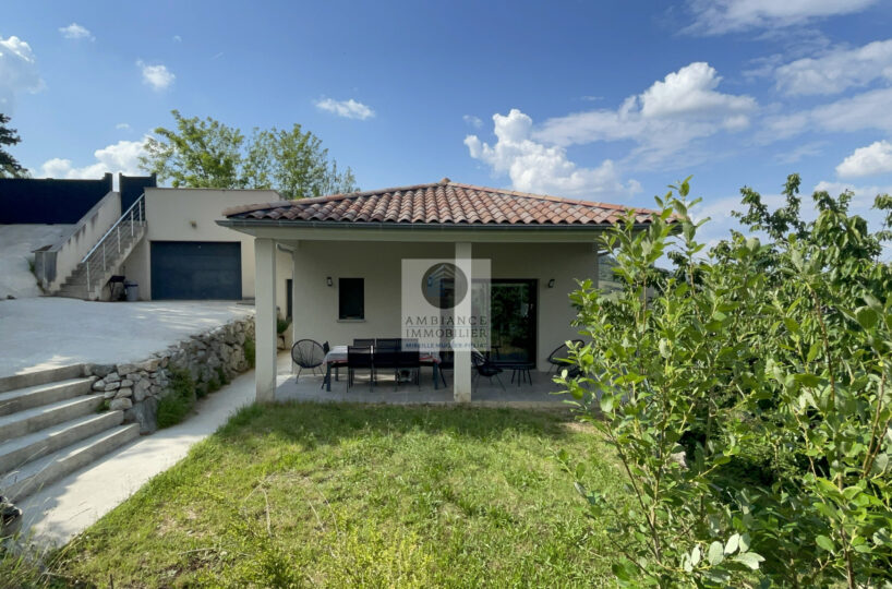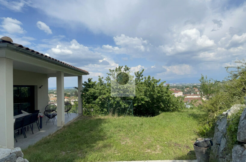 SAINT-PERAY, en exclusivité, dans quartier résidentiel, le calme, la proximité du centre du village et des écoles, une superbe vue sur le Vercors pour cette maison de 151m2 construite en 2016. Une décoration et une ambiance contemporaines, de beaux volumes et une conception atypique. Une pièce de vie de 44m2 : salon – cuisine intégrée dînatoire avec une grande baie vitrée pour accéder à une belle terrasse couverte et au jardin, cellier/buanderie, 1 suite parentale de 21m2 avec dressing et salle d’eau : 2 vasques, douche à l’italienne. Un espace enfants : 2 chambres avec dressing ou placard, 1 salle d’eau, un salon détente ou chambre de 27m2 avec accès au jardin. Chauffage par pompe à chaleur : plancher chauffant/rafraîchissant – ballon thermodynamique – huisseries en alu – adoucisseur – alarme. Un garage de 29m2 avec portail motorisé uniquement pour vélos et motos. Une plateforme avec 2 places de stationnements pouvant être transformée en carport ou garage. Une parcelle de 1 340m2 à paysager avec une grande partie du terrain en pente.