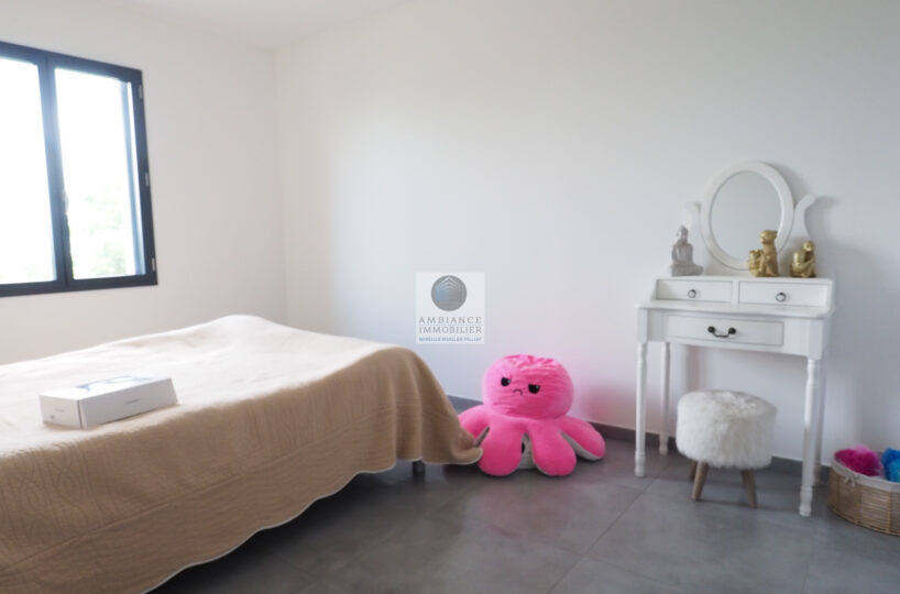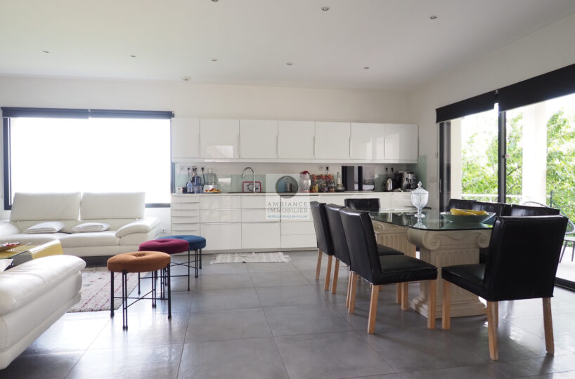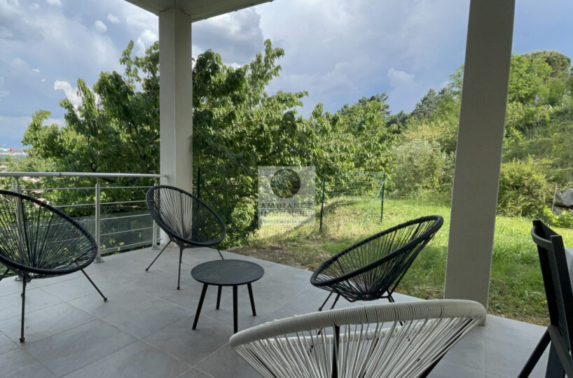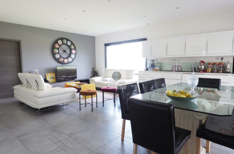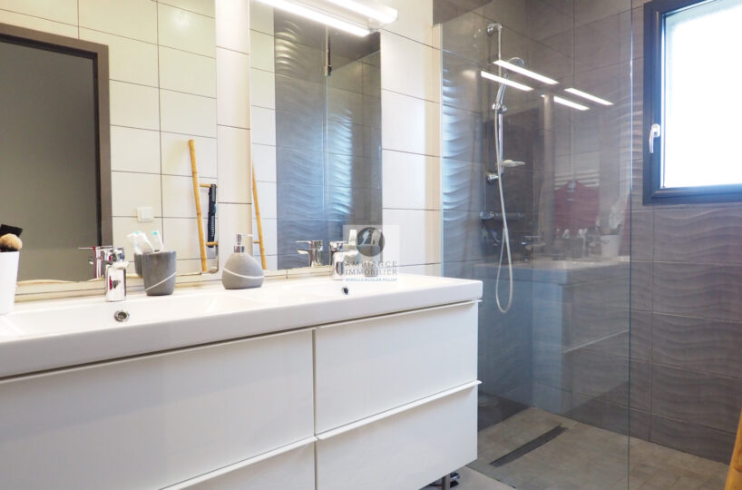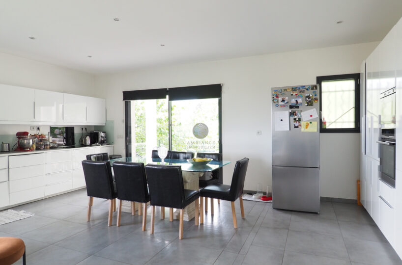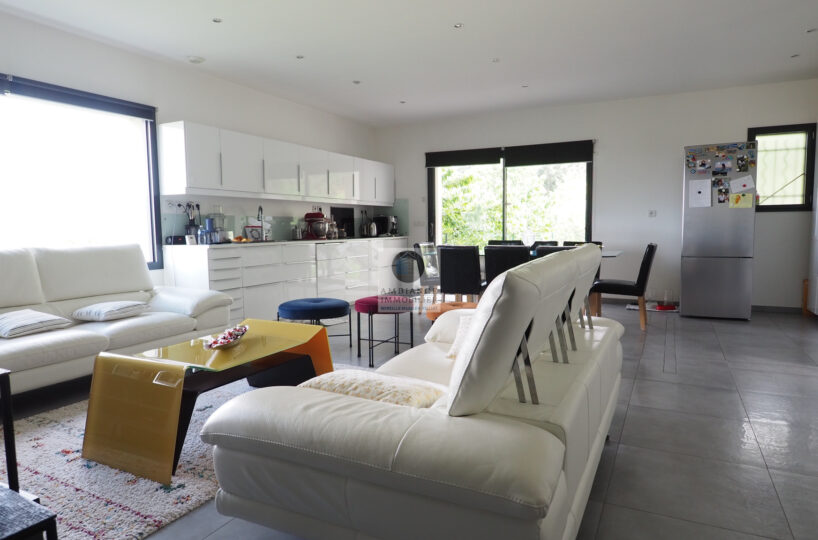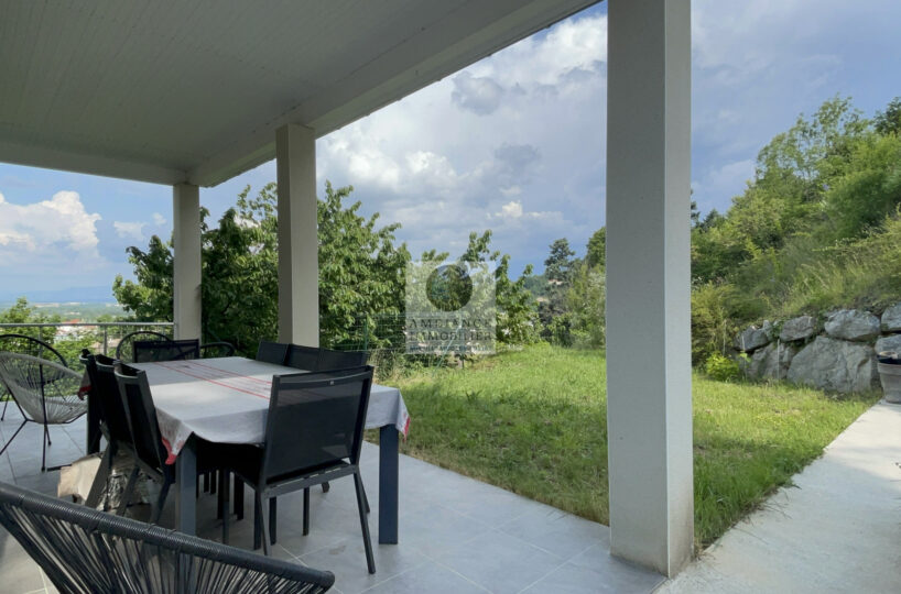 SAINT-PERAY, en exclusivité, dans quartier résidentiel, le calme, la proximité du centre du village et des écoles, une superbe vue sur le Vercors pour cette maison de 151m2 construite en 2016. Une décoration et une ambiance contemporaines, de beaux volumes et une conception atypique. Une pièce de vie de 44m2 : salon – cuisine intégrée dînatoire avec une grande baie vitrée pour accéder à une belle terrasse couverte et au jardin, cellier/buanderie, 1 suite parentale de 21m2 avec dressing et salle d’eau : 2 vasques, douche à l’italienne. Un espace enfants : 2 chambres avec dressing ou placard, 1 salle d’eau, un salon détente ou chambre de 27m2 avec accès au jardin. Chauffage par pompe à chaleur : plancher chauffant/rafraîchissant – ballon thermodynamique – huisseries en alu – adoucisseur – alarme. Un garage de 29m2 avec portail motorisé uniquement pour vélos et motos. Une plateforme avec 2 places de stationnements pouvant être transformée en carport ou garage. Une parcelle de 1 340m2 à paysager avec une grande partie du terrain en pente.