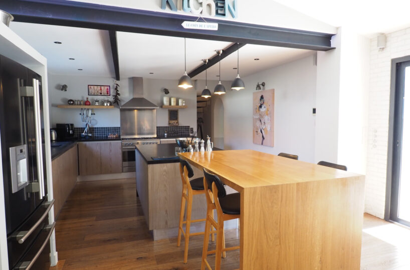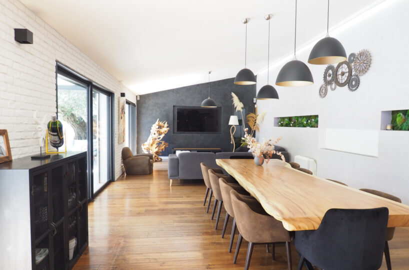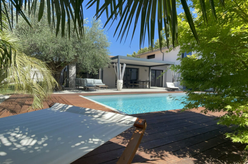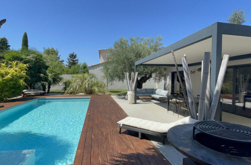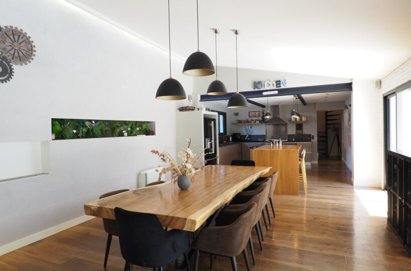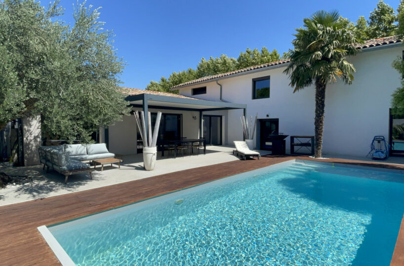 VALENCE dans quartier résidentiel, en exclusivité, le calme, la luminosité, de beaux volumes, une magnifique rénovation pour cette maison de 1880 de 232m2 avec une extension dans un esprit contemporain et chaleureux. Une pièce de vie de 75m2 : cuisine intégrée, salon-séjour avec cheminée bio-éthanol, de grandes baies vitrées offrant de belles perspectives sur le jardin zen. Buanderie, 4 chambres dont 1 suite parentale de 23m2 avec douche à l’italienne, vasque et dressing, 1 salle de bains avec vasques, douche et baignoire, 1 salle home cinéma, un espace détente de 17m2 avec Jacuzzi, une superbe cave à vin voutée et salle de billard. Chauffage par pompe à chaleur – climatisation – huisseries en alu – domotique – alarme. Garage, cave, parkings sécurisés. Une parcelle de 785m2 avec un jardin joliment paysager et une piscine chauffée et sécurisée de 9m x 4m. De belles terrasses avec pergola bio-climatique et four à pizza.
