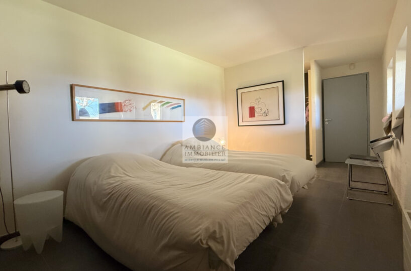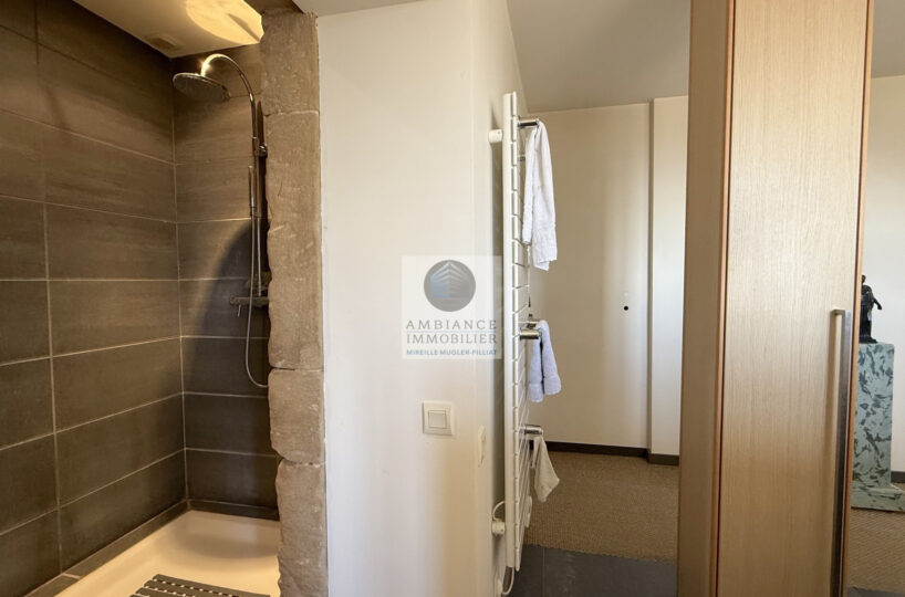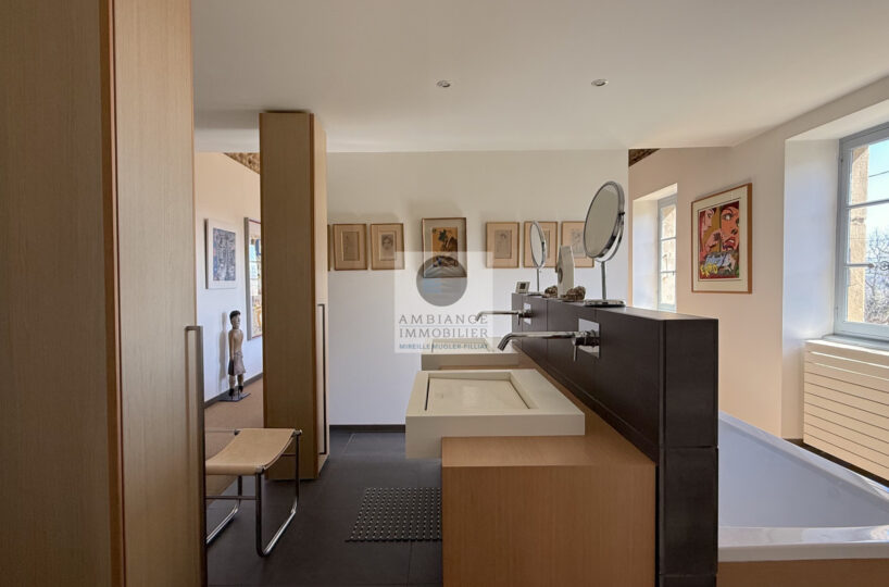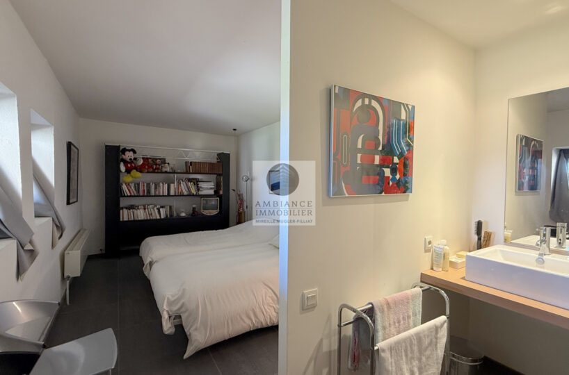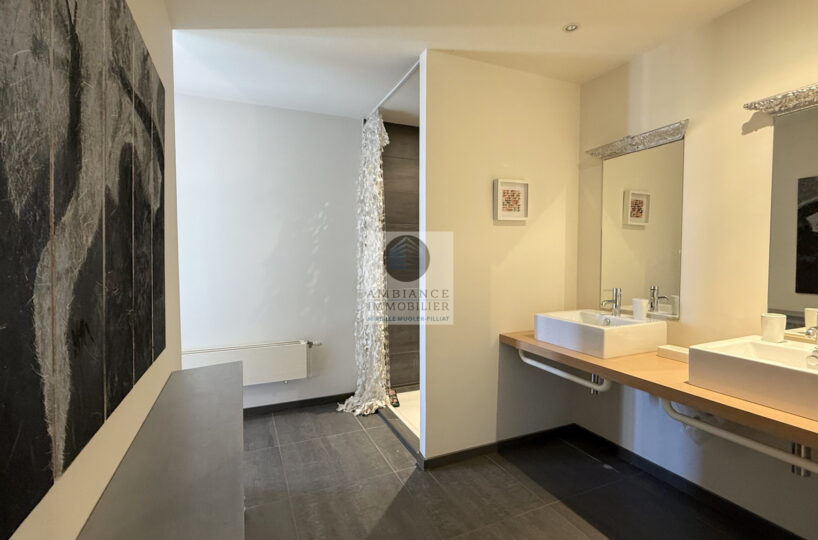 Un espace nuit avec 1 chambre/dressing de 24m2 et 1 suite parentale de 46m2 à l’ambiance cocooning avec salle de bains : 2 vasques, douche à l’italienne, baignoire et vasques.
