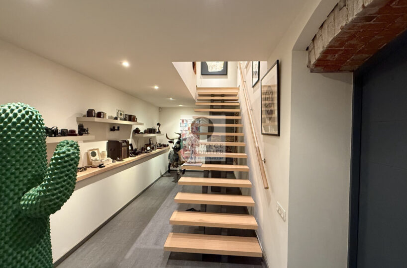 Un superbe escalier desservant le rez-de-chaussée : 1 suite enfant de 16m2 avec salle d’eau.