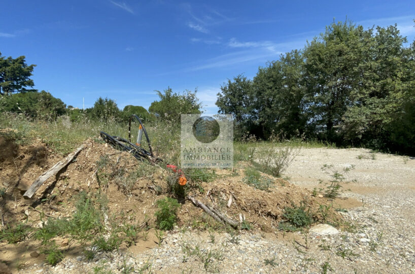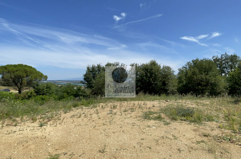 SAINT GEORGES LES BAINS, dans un hameau en campagne, un environnement boisé, une jolie vue sur le Rhône et le Vercors pour ce terrain plat viabilisé de 1 486m2 libre de constructeur – possibilité de division en 2 lots, viabilités en bordure de parcelle.
