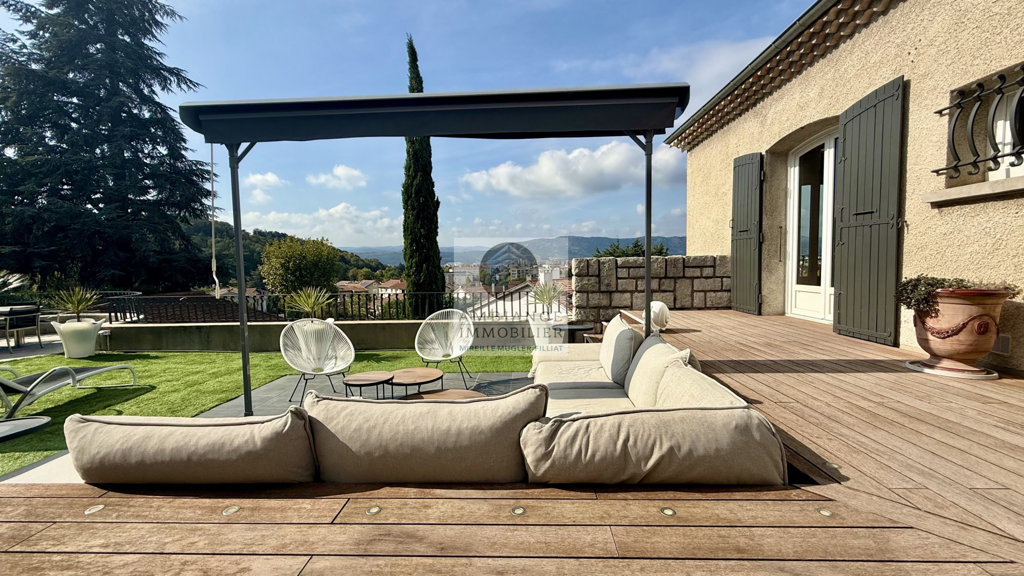 VALENCE en co-exclusivité, dans quartier résidentiel, une position dominante, une superbe vue sur la ville et les monts d’Ardèche pour cette maison d’architecte de 284m2 totalement rénovée en 2019 dans un esprit chic et contemporain.Une conception agréable et de beaux volumes avec 201m2 de plain-pied et un accès direct à de superbes terrasses.Un hall d’entrée […]