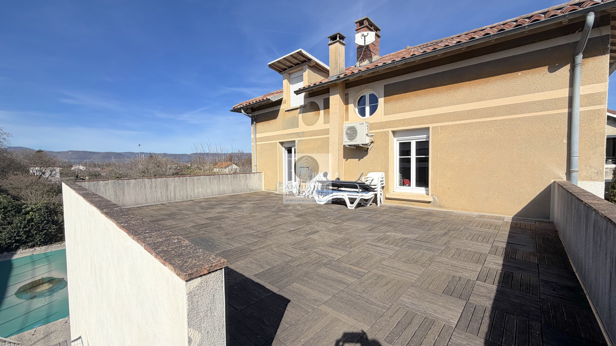 ETOILE SUR RHONE, en exclusivité, dans quartier résidentiel, une position dominante et la proximité du centre-ville, le calme, une belle exposition, la luminosité et une belle architecture provençale pour cette maison de 155m2 sur une parcelle de 2000m2 avec piscine.Un salon-séjour de 40m2 avec un poêle à bois Jotul et un accès à une véranda […]