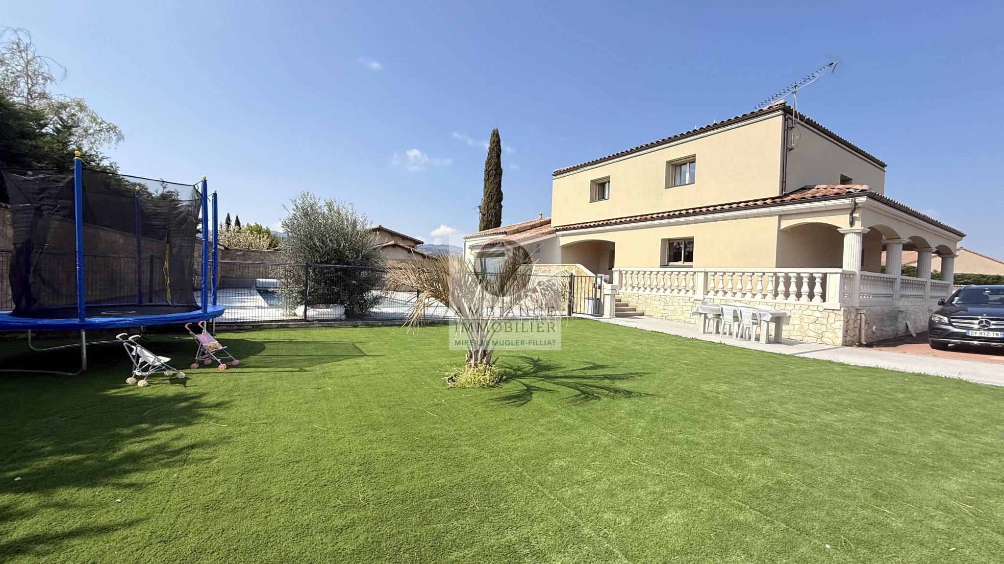 MONTELEGER, en exclusivité, en position dominante dans un quartier résidentiel recherché, une superbe vue pour cette maison de 196m2 sur un magnifique parc paysager de 8 763m2 avec piscine.Une belle exposition, la luminosité, de beaux volumes et une conception agréable pour cette maison de 2003 de style provençal.Dès l’entrée une ambiance de douceur et de […]