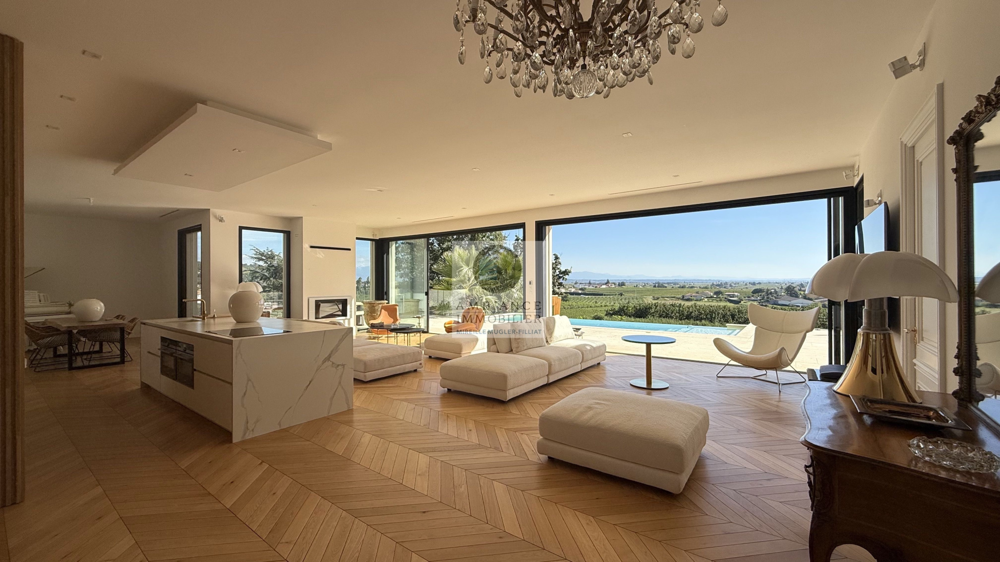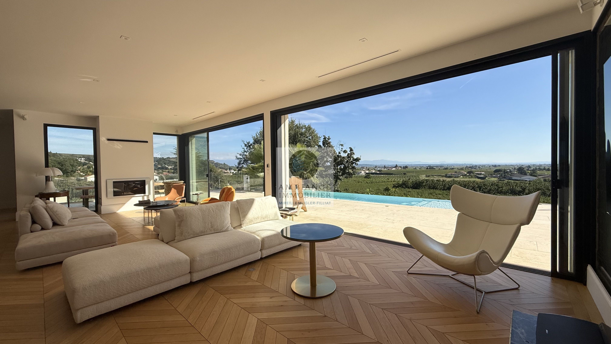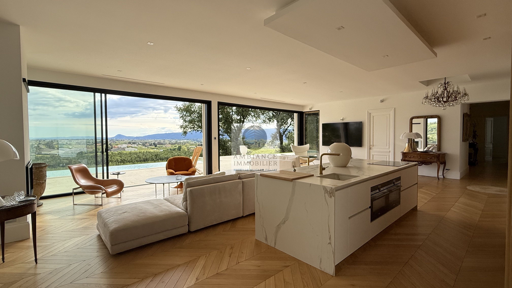 MERCUROL-VEAUNES, une situation exceptionnelle en position dominante au milieu des vignes avec un panorama superbe, un tableau vivant changeant au rythme des saisons.Une superbe entrée par une cour pavée de 600m2 avec un portail majestueux.L’alliance parfaite d’une maison d’architecte de 248m2 aux lignes épurées et aux volumes généreux avec piscine à débordement sur une parcelle […]