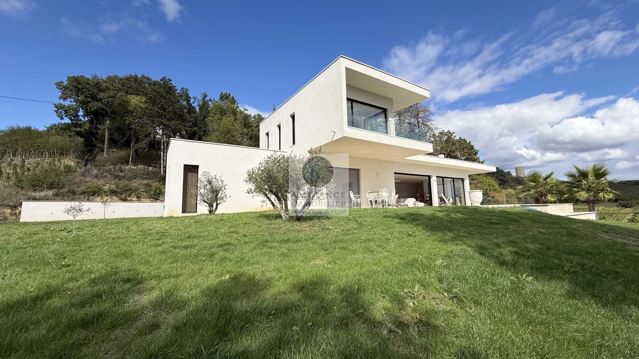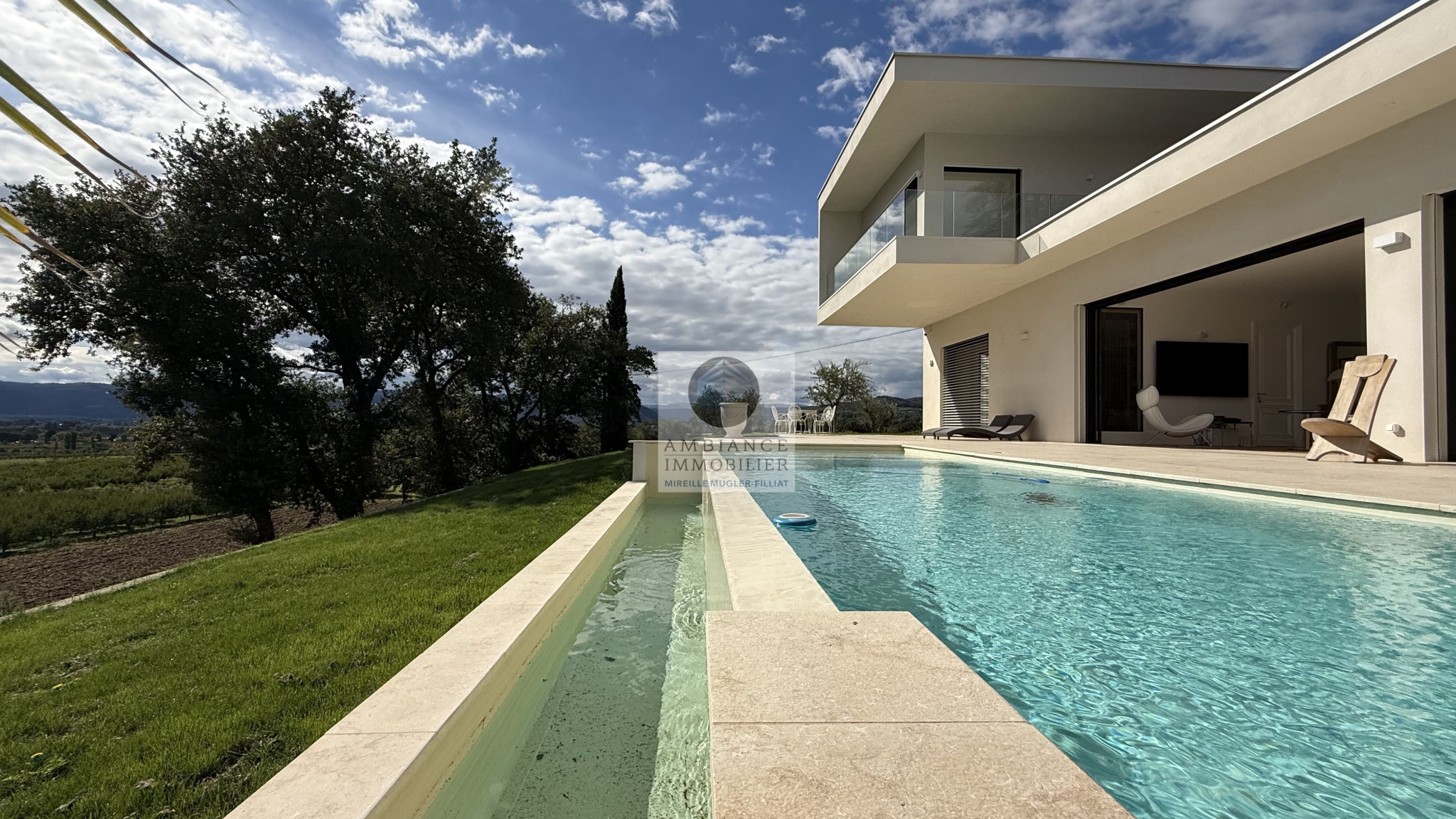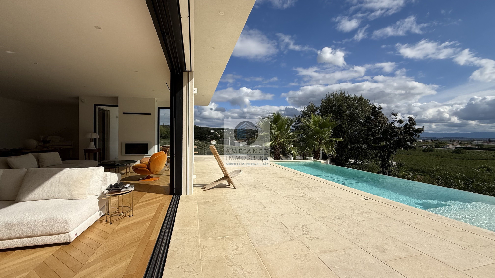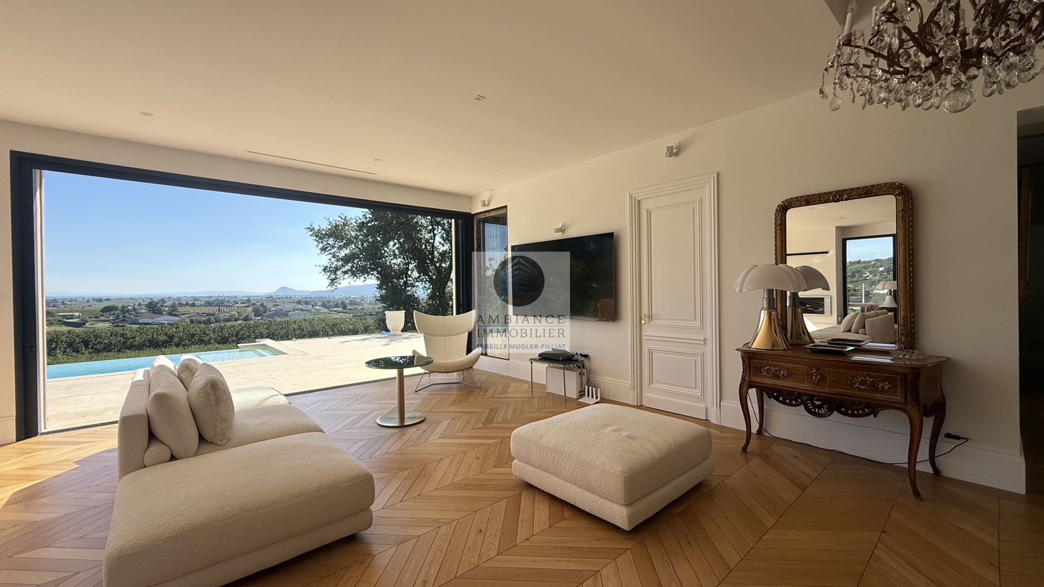 MERCUROL-VEAUNES, une situation exceptionnelle en position dominante au milieu des vignes avec un panorama superbe, un tableau vivant changeant au rythme des saisons.Une superbe entrée par une cour pavée de 600m2 avec un portail majestueux.L’alliance parfaite d’une maison d’architecte de 248m2 aux lignes épurées et aux volumes généreux avec piscine à débordement sur une parcelle […]