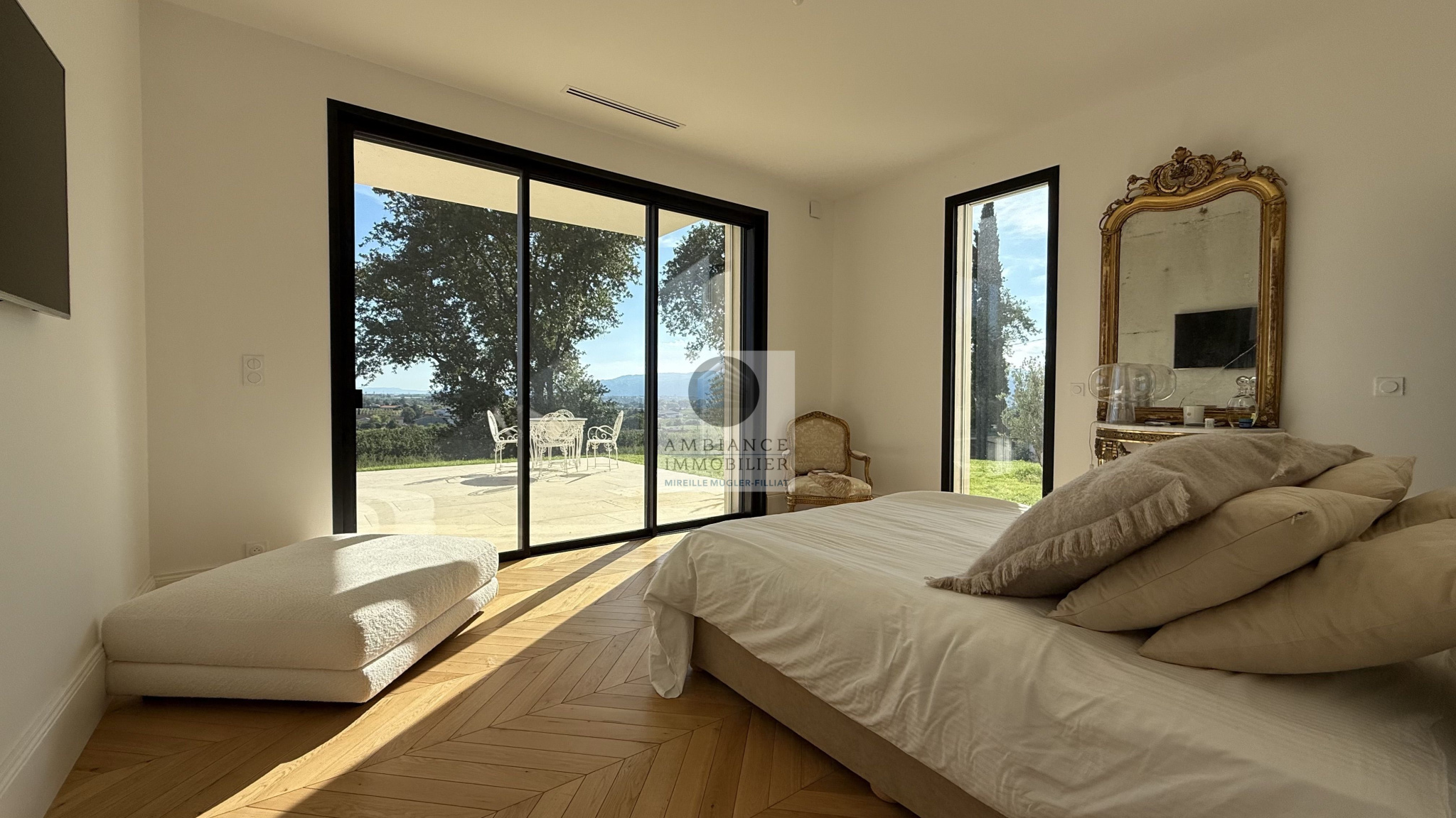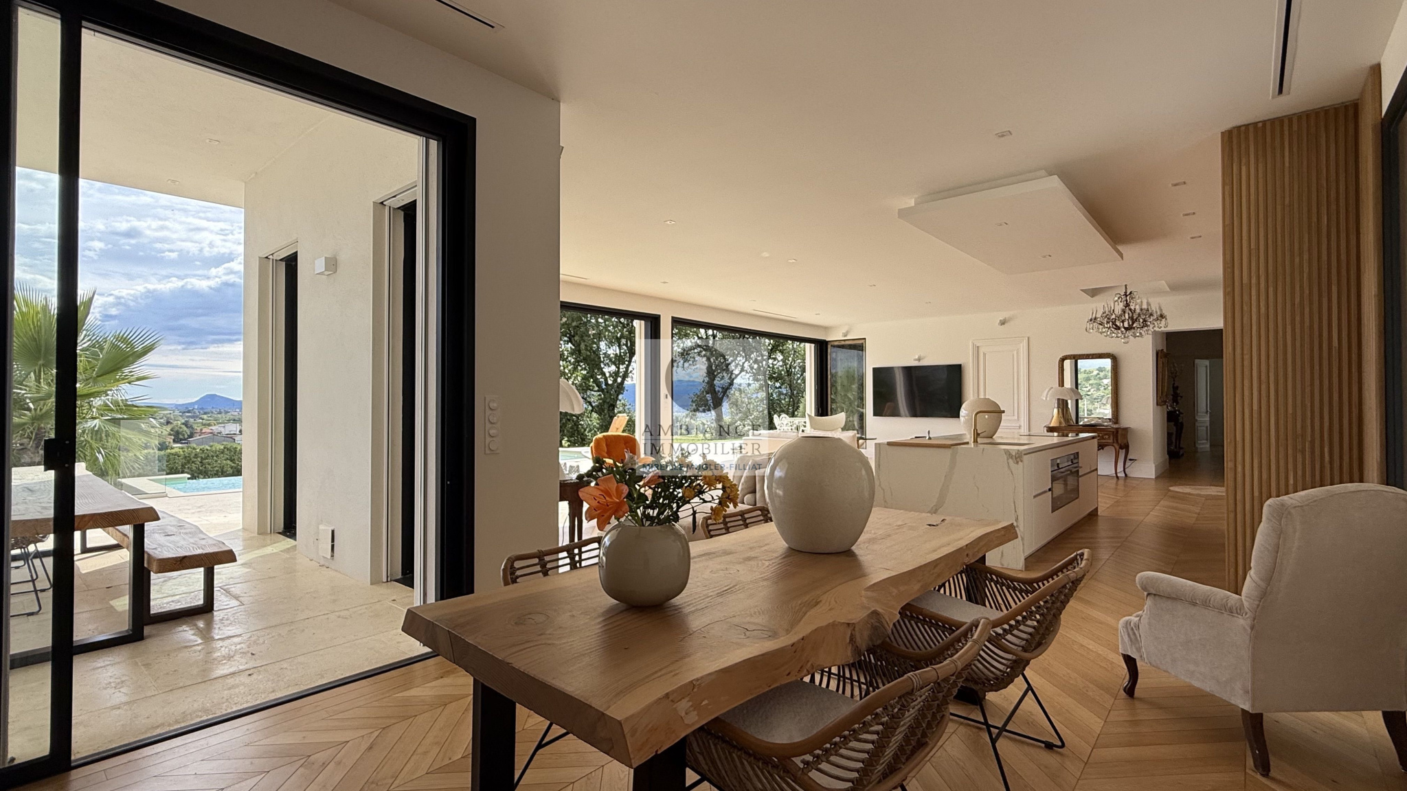 MONTELEGER, en exclusivité, en position dominante dans un quartier résidentiel recherché, une superbe vue pour cette maison de 196m2 sur un magnifique parc paysager de 8 763m2 avec piscine.Une belle exposition, la luminosité, de beaux volumes et une conception agréable pour cette maison de 2003 de style provençal.Dès l’entrée une ambiance de douceur et de […]