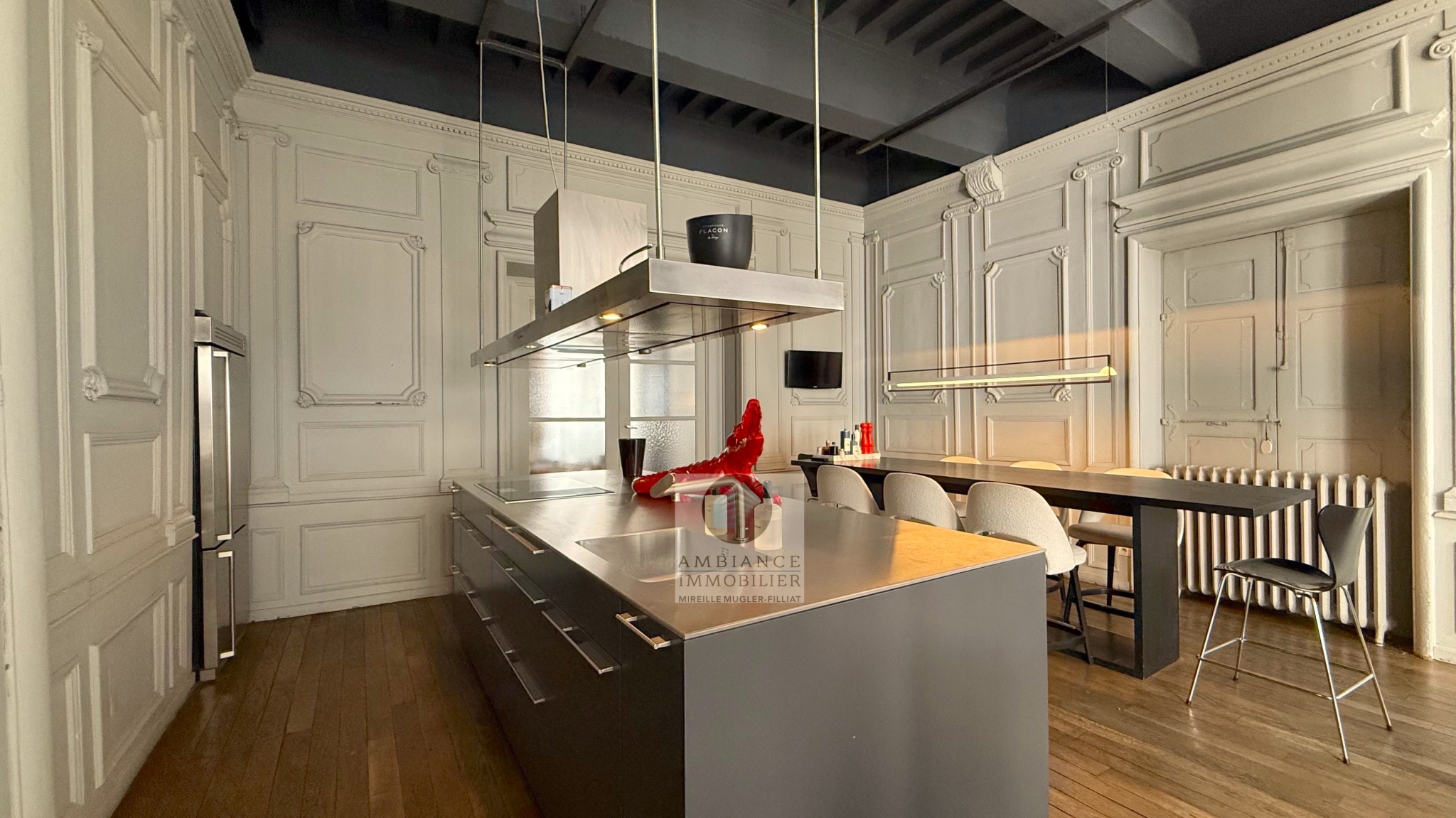 VALENCE centre historique dans un superbe hôtel particulier, de beaux volumes, l’alliance réussie d’une rénovation contemporaine avec le caractère authentique préservé pour cet appartement de 358m2 avec terrasse et garage. De magnifiques vitraux, plafonds à la française, boiseries murales, cheminées en marbre, sols en terrazzo, parquet et métal. Le charme de l’ancien revisité et sublimé […]