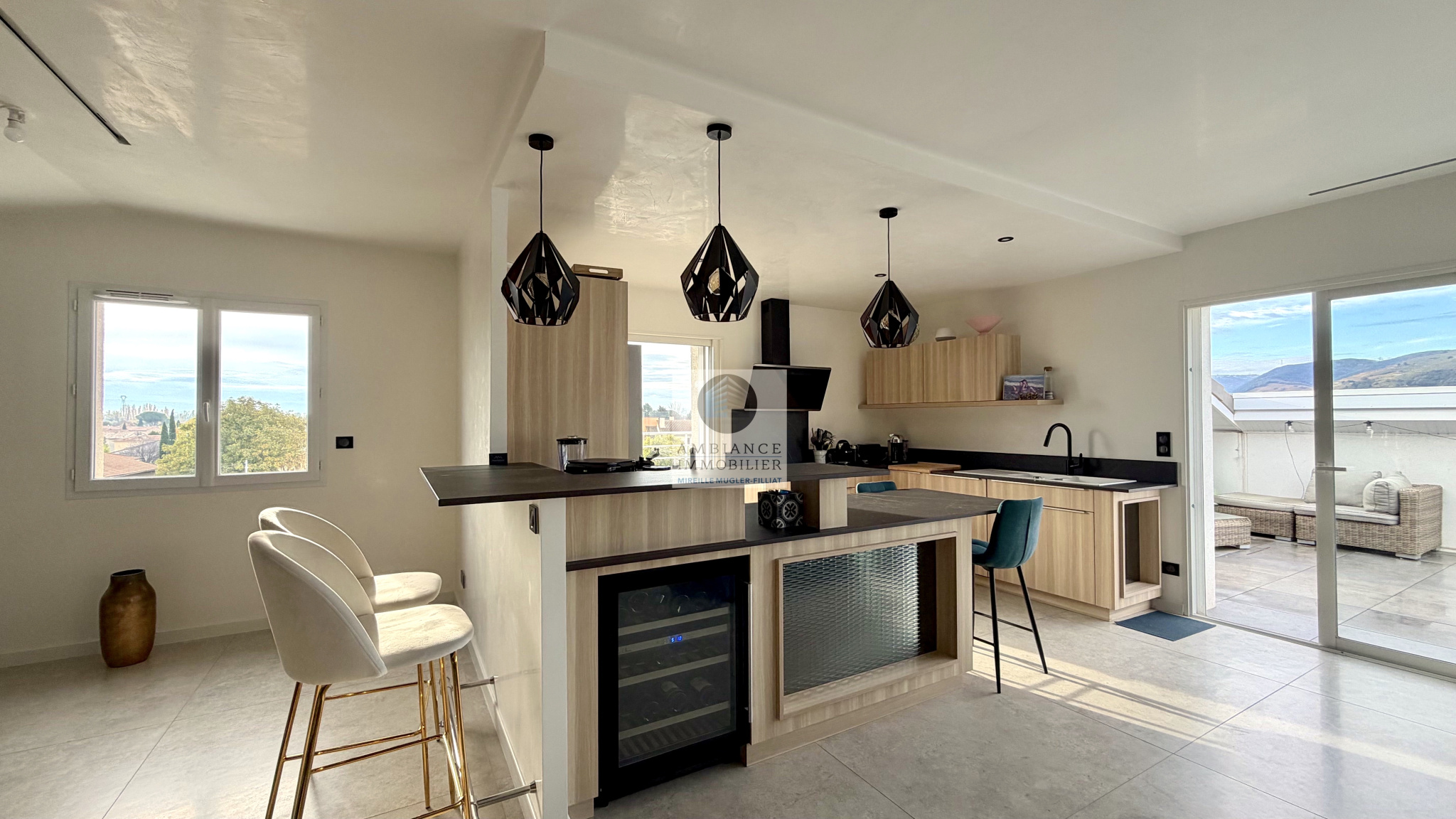 TOURNON SUD, en exclusivité, au dernier étage avec ascenseur d’une petite résidence de standing récente, la luminosité et le calme pour cet appartement d’exception de 136m2 loi carrez et 160m2 habitables sublimé par 84m2 de terrasses offrant une superbe vue sur les coteaux et la ville.Une conception atypique, de beaux volumes et de superbes prestations, […]